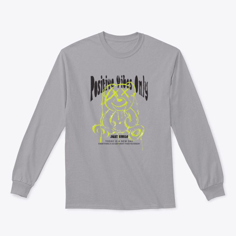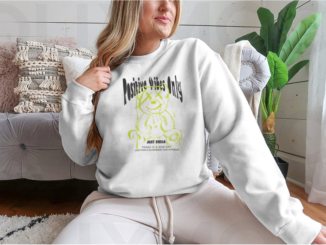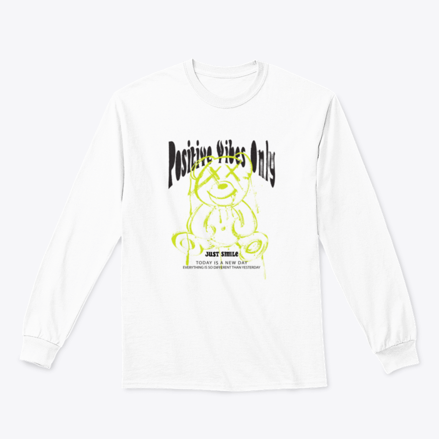 In summary, the Positive Vibes Only Slogan Text T-shirt featuring a smiling teddy bear is more than just a piece of clothing; it's a statement of positivity and joy. With its comfortable fabric, stylish design, and durable construction, this t-shirt is perfect for anyone looking to spread good vibes while enjoying a fashionable look.