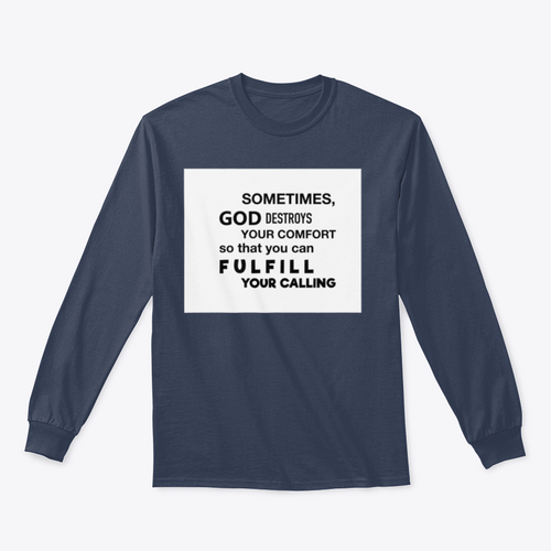 What sets this T-shirt apart is the powerful quote it features: 'Sometimes God Destroys Your Comfort So That You Can.' This message serves as a daily reminder to embrace change and challenges, making it not just a piece of clothing, but a source of motivation and inspiration.
