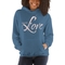 Not only is this hoodie functional, but it also boasts a stylish graphic design that inspires love. The eye-catching print adds a touch of personality to your outfit, making it suitable for various occasions. Pair it with your favorite jeans or leggings for a casual yet chic look.