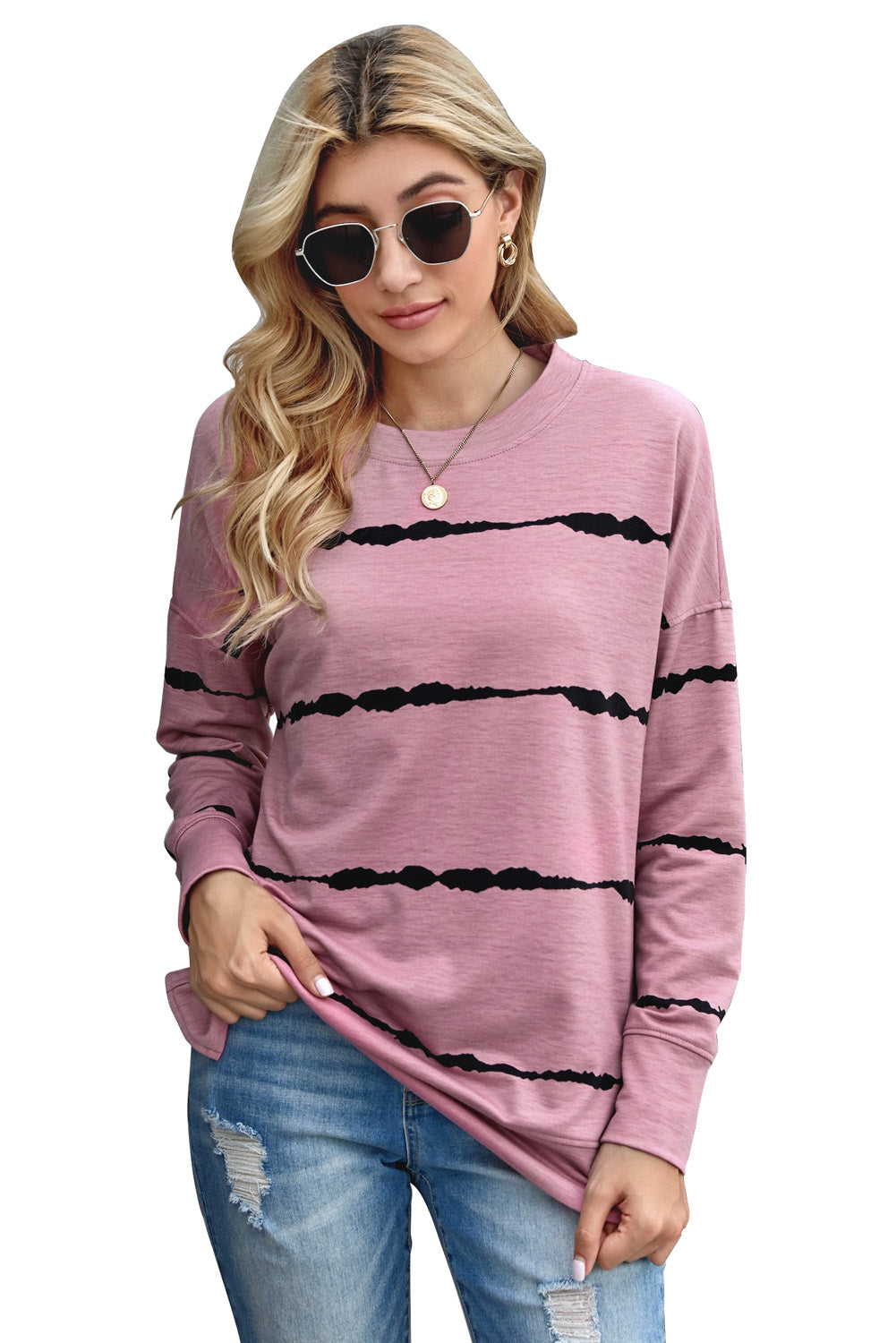 Dropship Womens Tie-dye Stripes Pink Sweatshirt