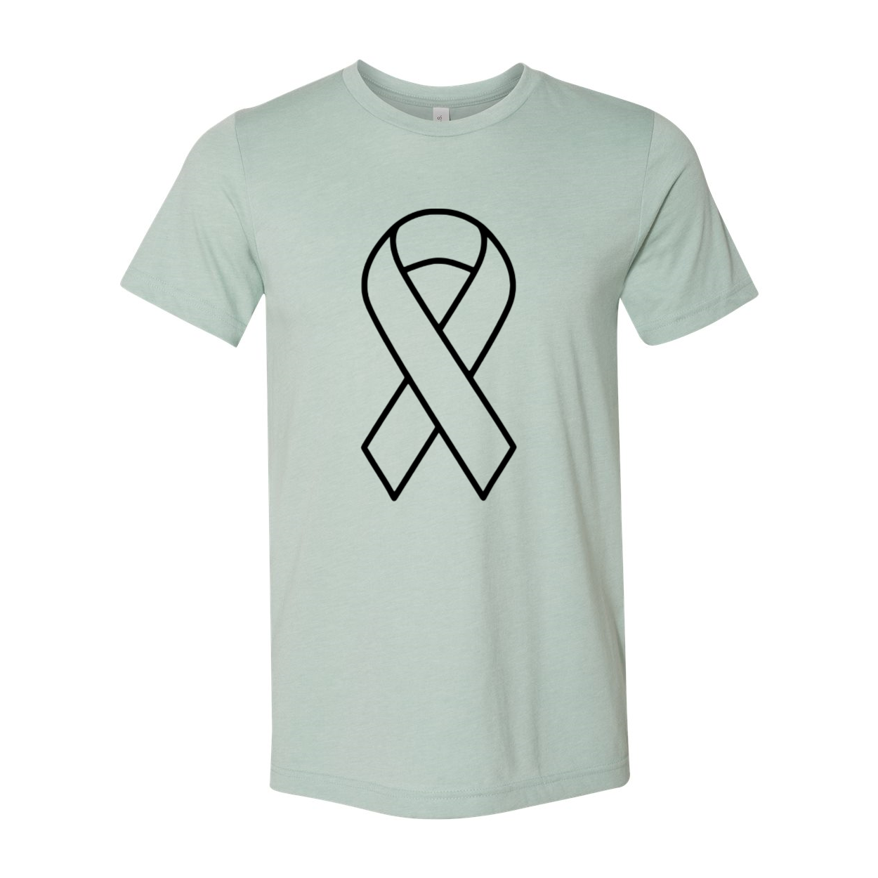 A unisex Awareness Ribbon Shirt made from soft ring spun cotton, available in multiple colors and sizes, featuring a crew neck and short sleeves.
