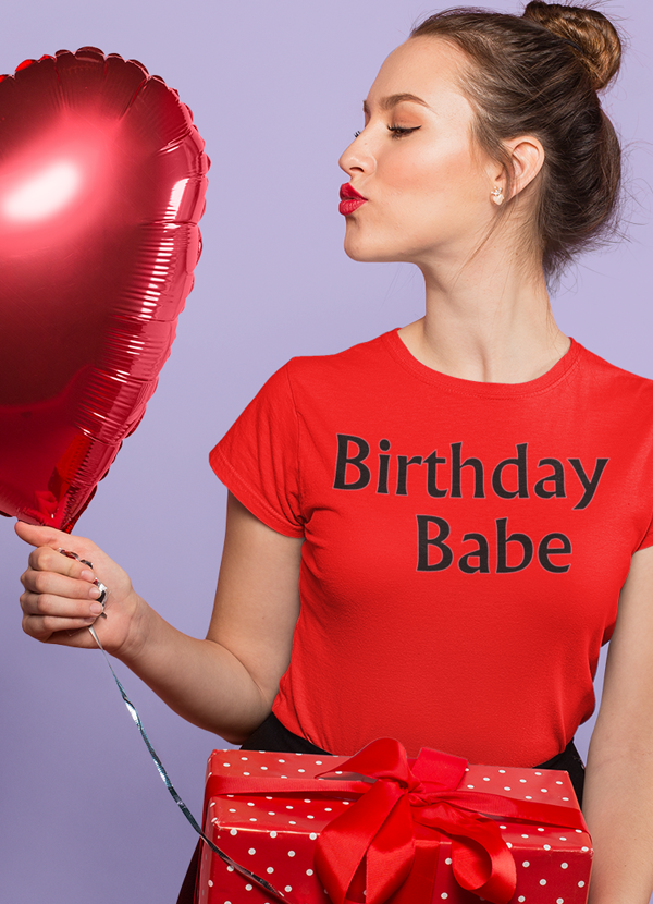 The vibrant red color of the Birthday Babe T-shirt is perfect for celebrations and parties. It adds a pop of color to your outfit and is sure to turn heads. The fun and playful design makes it a great choice for birthday celebrations, casual outings, or even as a gift for a friend. Express your personality and celebrate in style with this eye-catching t-shirt!