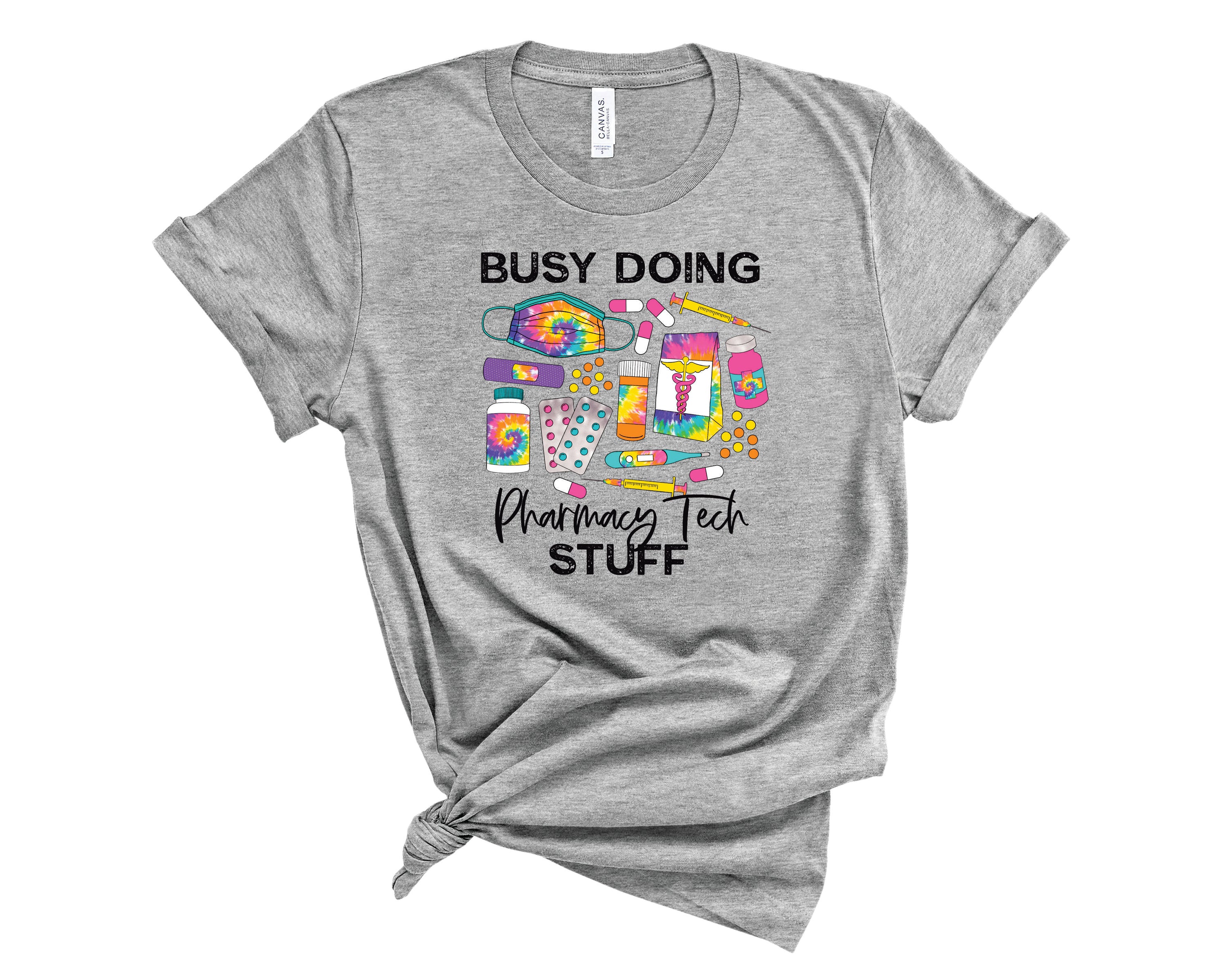 Whether you're looking to express your love for the pharmacy field or searching for the perfect gift for a pharmacy professional, the Busy Pharmacy Tech graphic tee is an excellent choice. With its combination of comfort, style, and meaningful design, this t-shirt is sure to become a favorite in your collection.