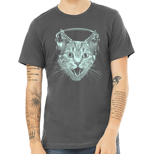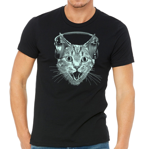 Dropship Cat Wearing Headphones Men's Tshirt- Cat DJ Shirt For Men and Boys-