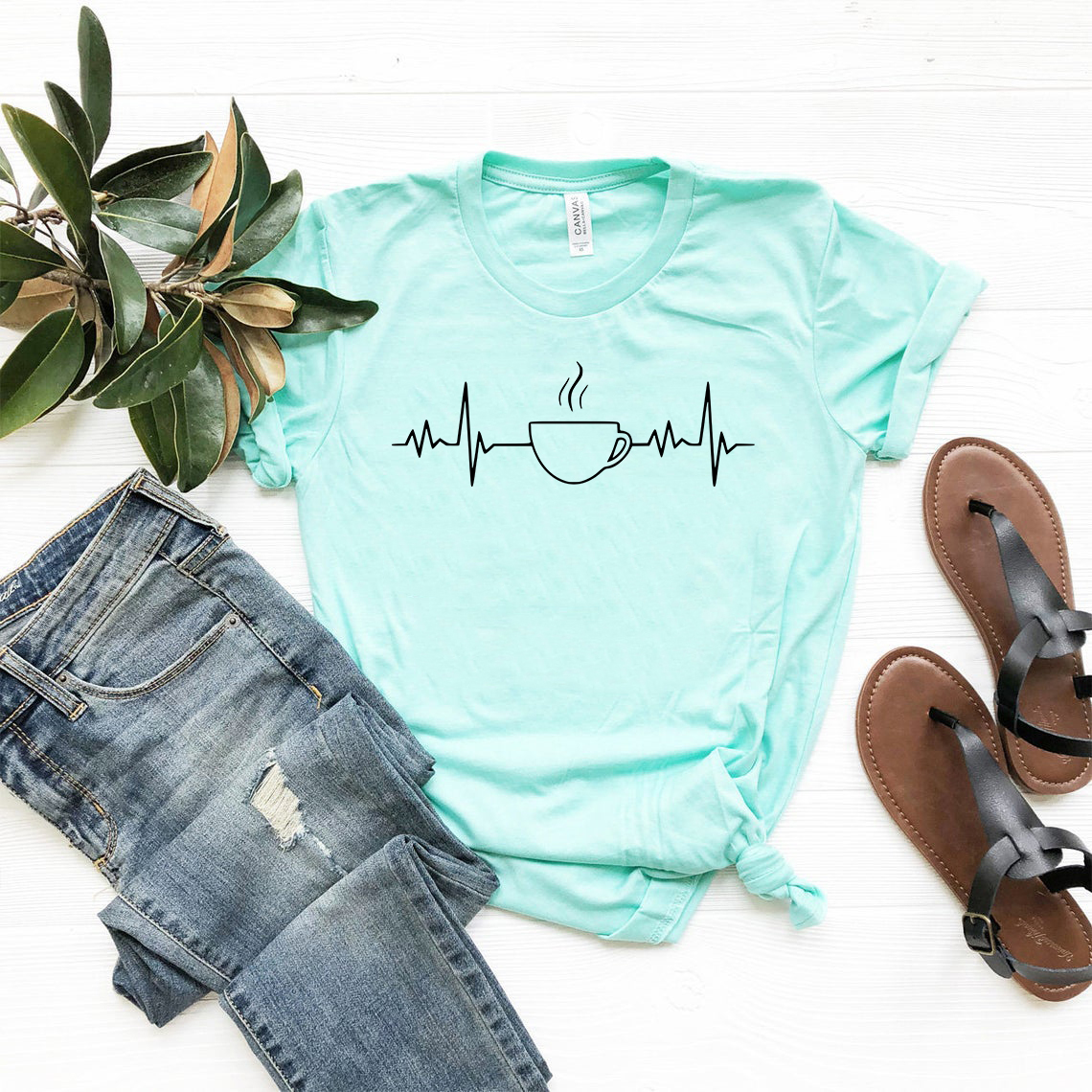 The Coffee Heartbeat design is printed with high-quality inks that ensure longevity and vibrancy. The print is designed to withstand the test of time, so you can wear your shirt confidently, knowing that the design will remain intact even after multiple washes.