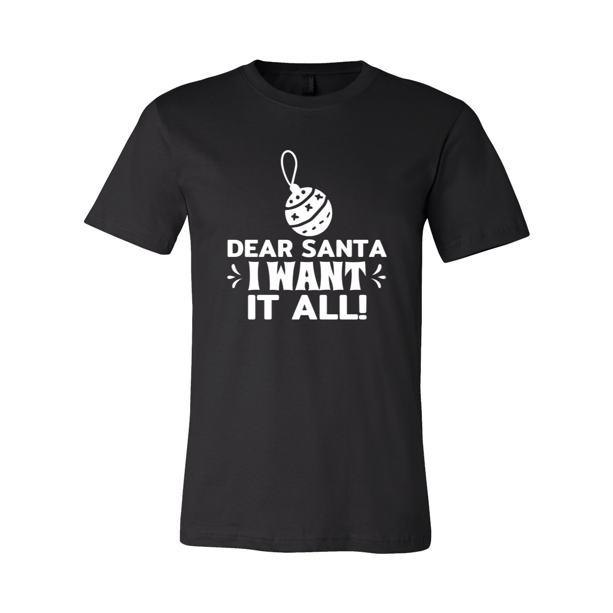 Celebrate the holiday season in style with the Dear Santa I Want It All Shirt. This unisex T-shirt is not just a piece of clothing; it's a statement of your festive spirit. Made from high-quality ring spun cotton, this shirt offers ultimate comfort, making it perfect for all-day wear during holiday gatherings, parties, or simply lounging at home.