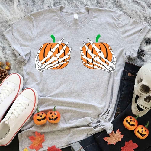 Celebrate Halloween in style with our Double Pumpkin Funny Halloween T-Shirt. This unique t-shirt features a whimsical pumpkin design that is sure to turn heads and spark conversations. Made from high-quality materials, this shirt is not only stylish but also incredibly comfortable, making it the perfect choice for any Halloween event or casual outing.