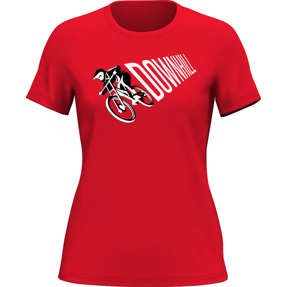 A stylish women's downhill cycling t-shirt made from 100% ringspun cotton, featuring a semi-fitted design and eco-friendly dyes.