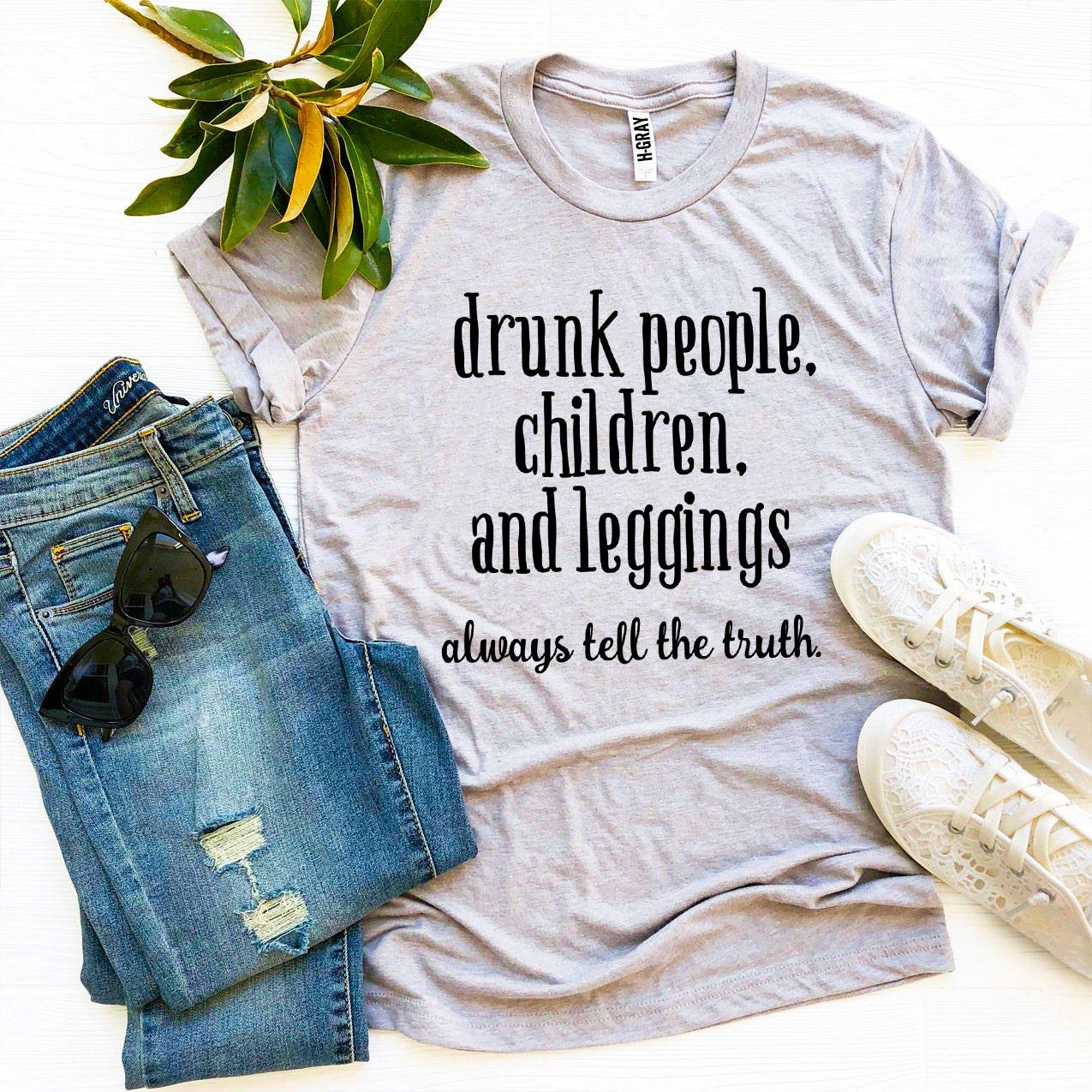 The Drunk People Children And Leggings T-shirt makes for a fantastic gift for friends and family who appreciate humor and comfort in their clothing. Whether it's for a birthday, holiday, or just because, this t-shirt is sure to bring a smile to anyone's face. Pair it with some fun leggings or jeans for a complete look that is both stylish and comfortable.