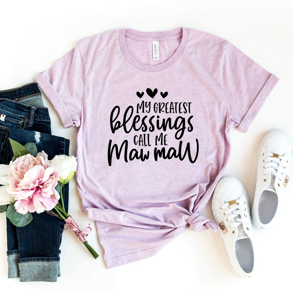 DT0123 My Greatest Blessing Call Me Maww Maww Shirt displayed in multiple colors, showcasing its comfortable fabric and stylish design.