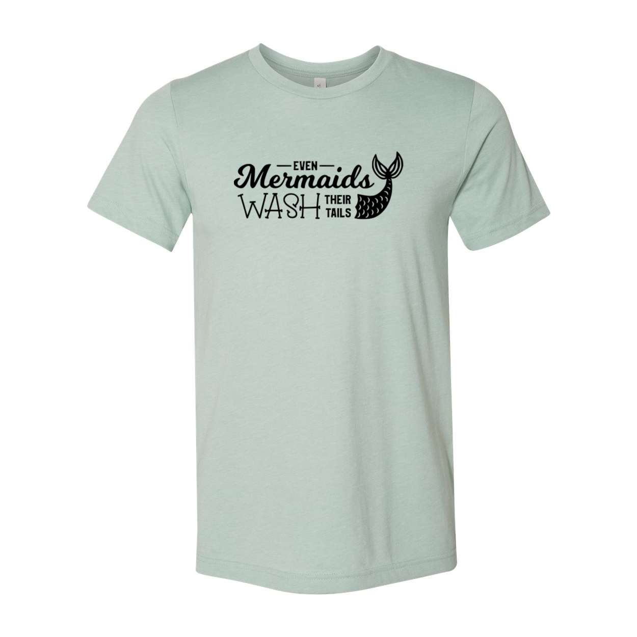 The Even The Mermaids Wash Their Tails Shirt features a slightly slimmer body and shorter sleeves, giving it a modern and stylish silhouette. The classic crew neck design ensures a comfortable fit, while the 1x1 rib knit neck adds a touch of sophistication. Plus, the tear-away label means no annoying tags to irritate your skin.
