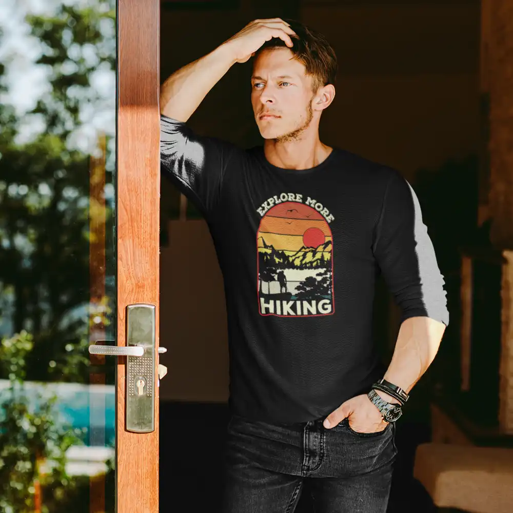 Not only is the Explore More Hiking Men Long Sleeve Shirt ideal for outdoor adventures, but it also transitions seamlessly into everyday wear. Pair it with jeans for a casual day out or wear it with shorts for a relaxed weekend look. Its stylish design ensures that you will always look your best, no matter the occasion.