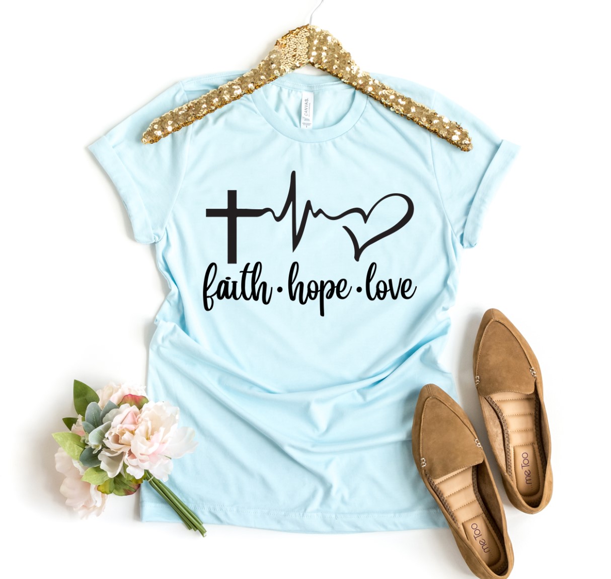 Faith Hope Love T-shirt made of premium ring spun cotton with a soft feel and vibrant flex print design.