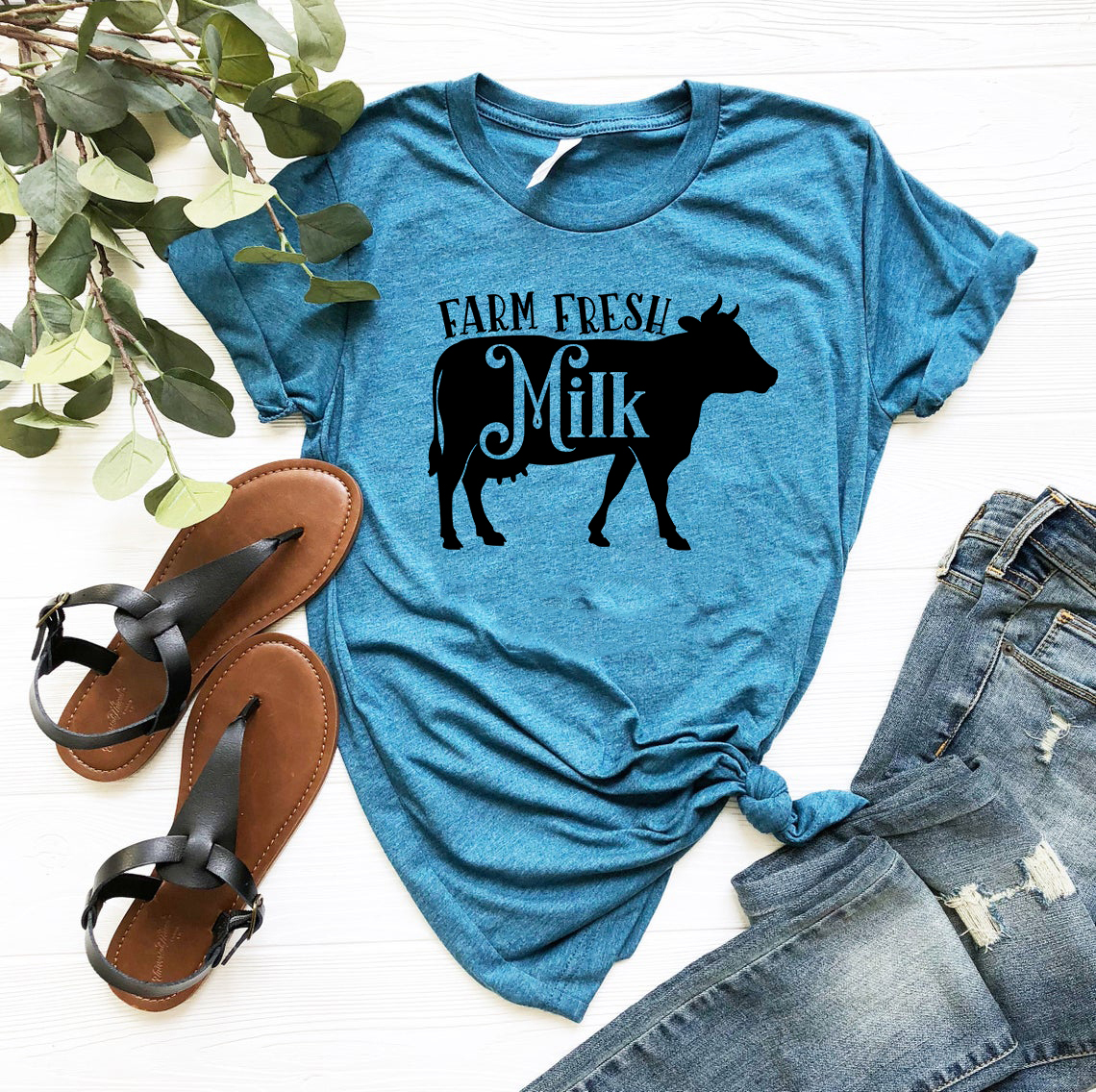A stylish unisex Farm Fresh Milk Shirt made from soft ring spun cotton, available in multiple colors and sizes.