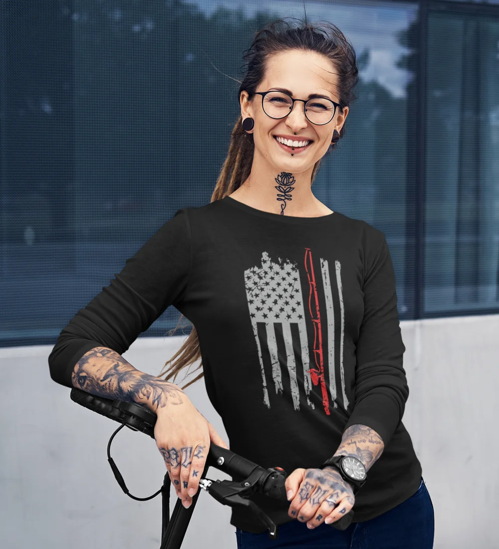 In summary, the Fishing Rod American Flag Women Long Sleeve Shirt is more than just a shirt; it's a celebration of your love for fishing and your patriotic spirit. With its unique design, comfortable fit, and quality fabric, it's a must-have for any fishing enthusiast. Don't miss out on the opportunity to own this stylish and versatile piece that is sure to become a favorite in your collection.