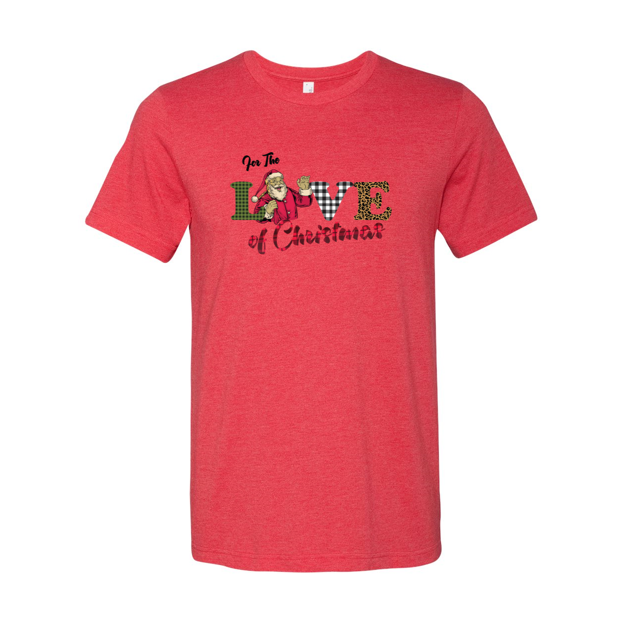 The For The Love Of Christmas Shirt is designed with a slightly slimmer body and shorter sleeves, giving it a modern and flattering silhouette. The classic crew neck and 1x1 rib knit neck add to the overall stylish appearance, making it a versatile piece that can be dressed up or down. Whether you're pairing it with jeans for a casual look or dressing it up with a festive skirt, this shirt is sure to become a favorite.