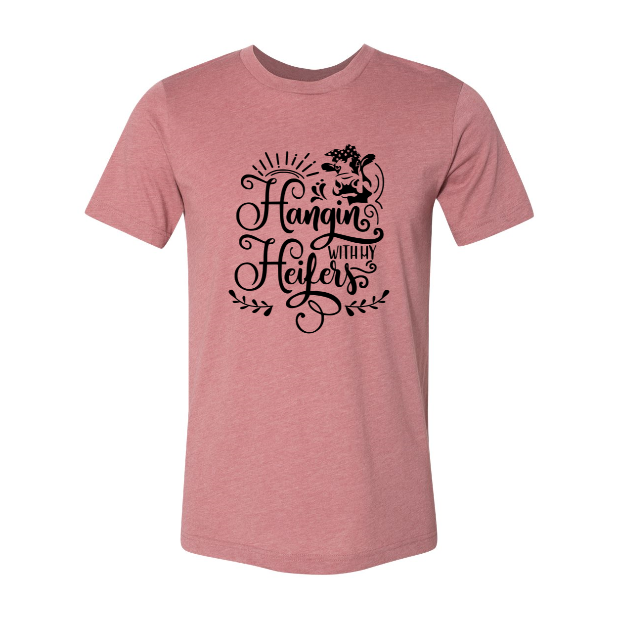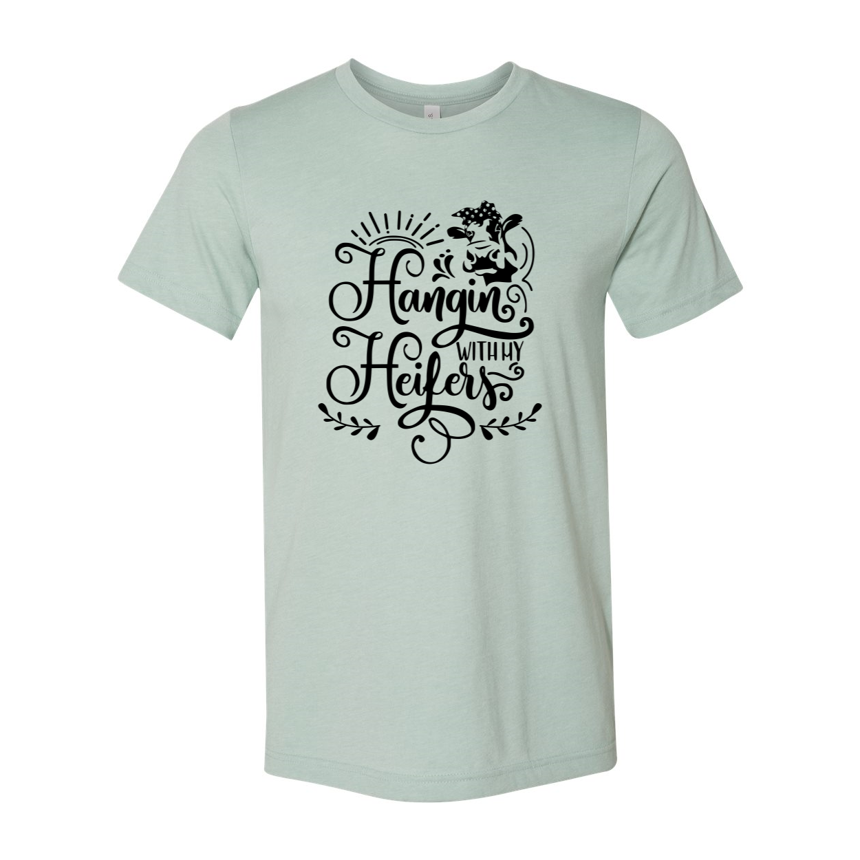 A unisex Hangin With My Heifers Shirt displayed in various colors, showcasing its soft fabric and stylish design.