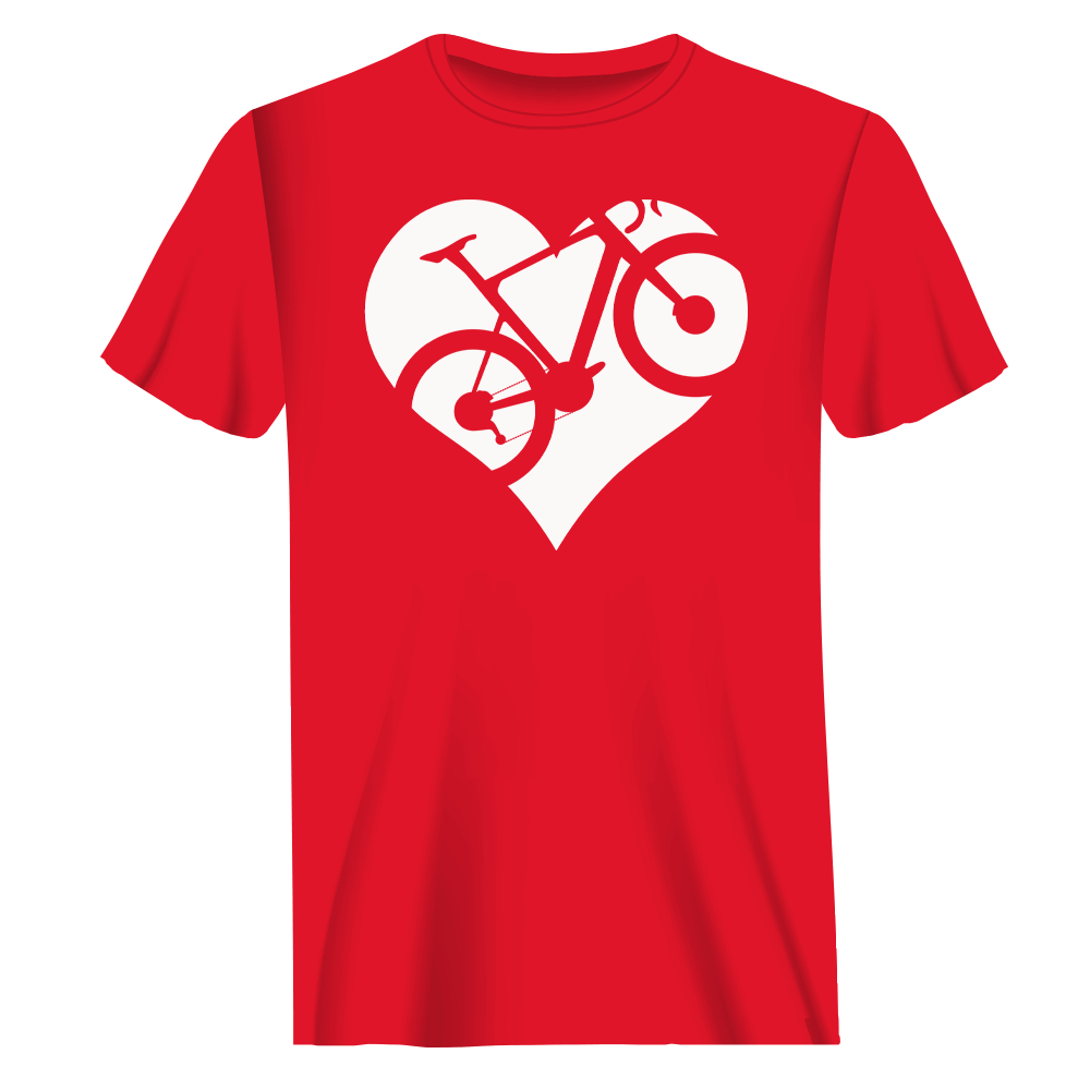 Whether you're hitting the trails, attending a cycling event, or simply hanging out with friends, this t-shirt is versatile enough to suit any occasion. Its modern classic fit ensures that it pairs well with shorts, jeans, or even cycling gear, making it a staple in your wardrobe. The Heart Bike T-Shirt is not just a piece of clothing; it's a statement of your passion for cycling.