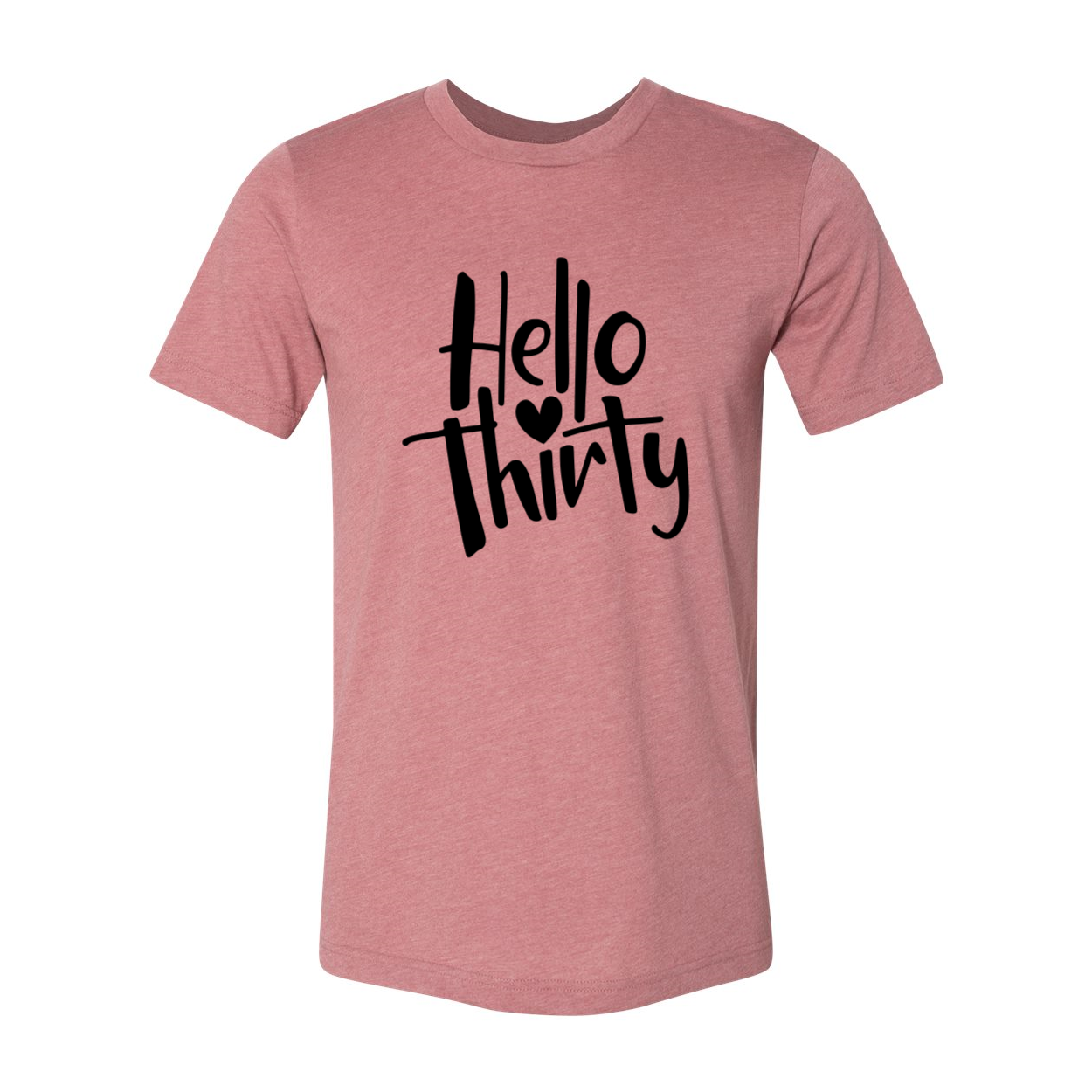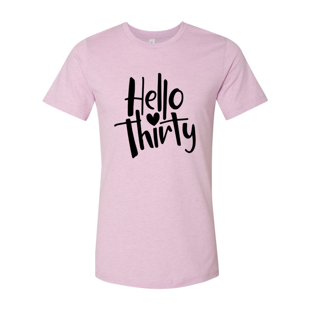 Hello Thirty Shirt in various colors, showcasing its unisex design and soft fabric.