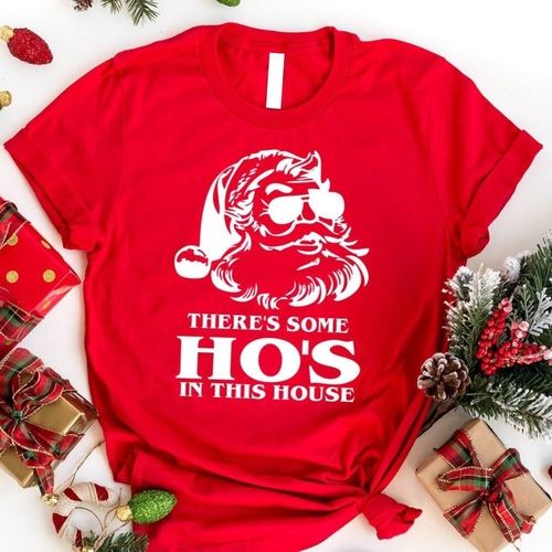 In summary, the Ho's In This House Christmas Tee is more than just a shirt; it's a fun and festive way to express your holiday spirit. With its comfortable fit, stylish design, and eco-friendly production, it's the perfect choice for anyone looking to make a statement this season. Don't miss out on the chance to be the center of attention at your next holiday gathering!