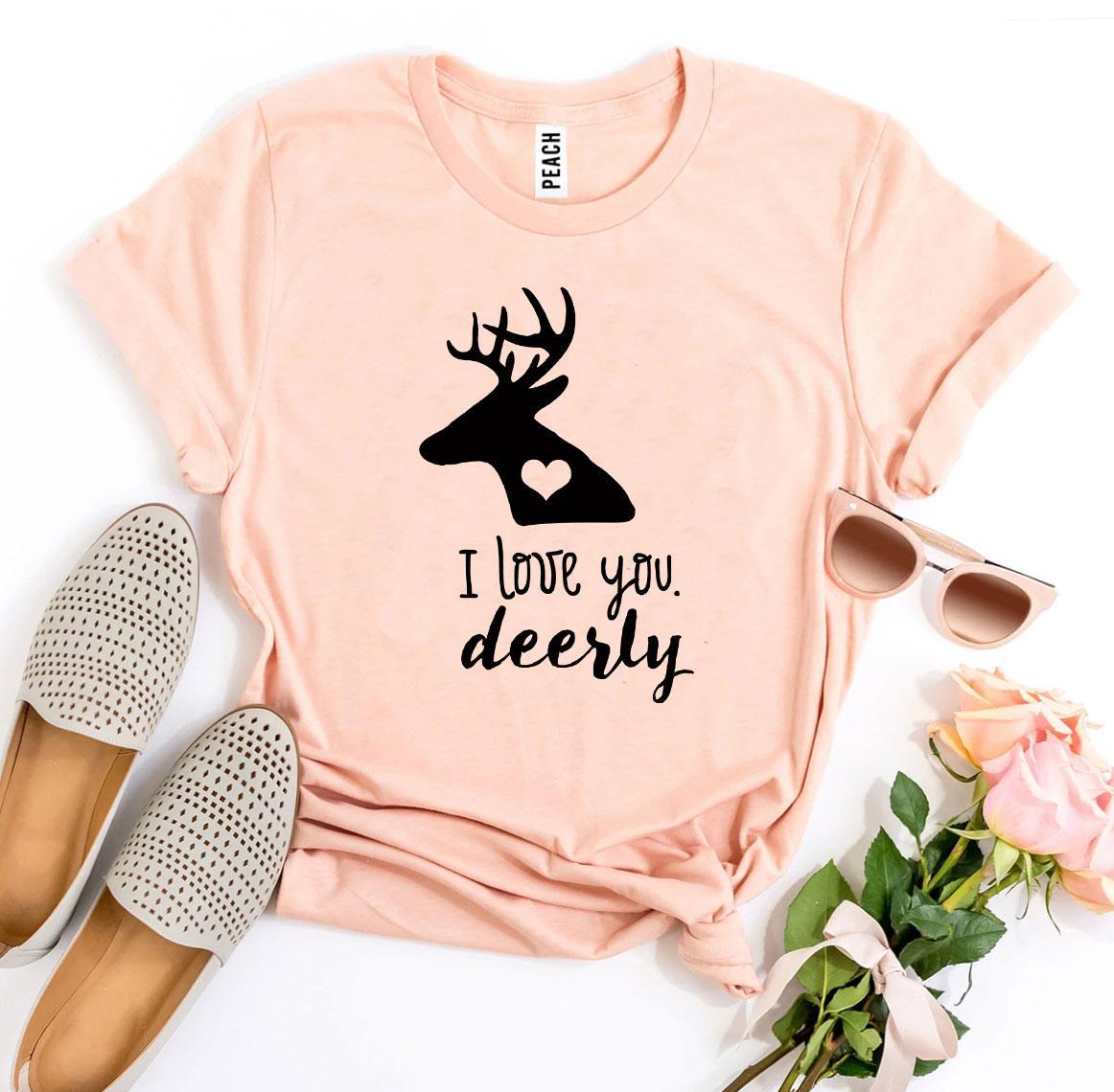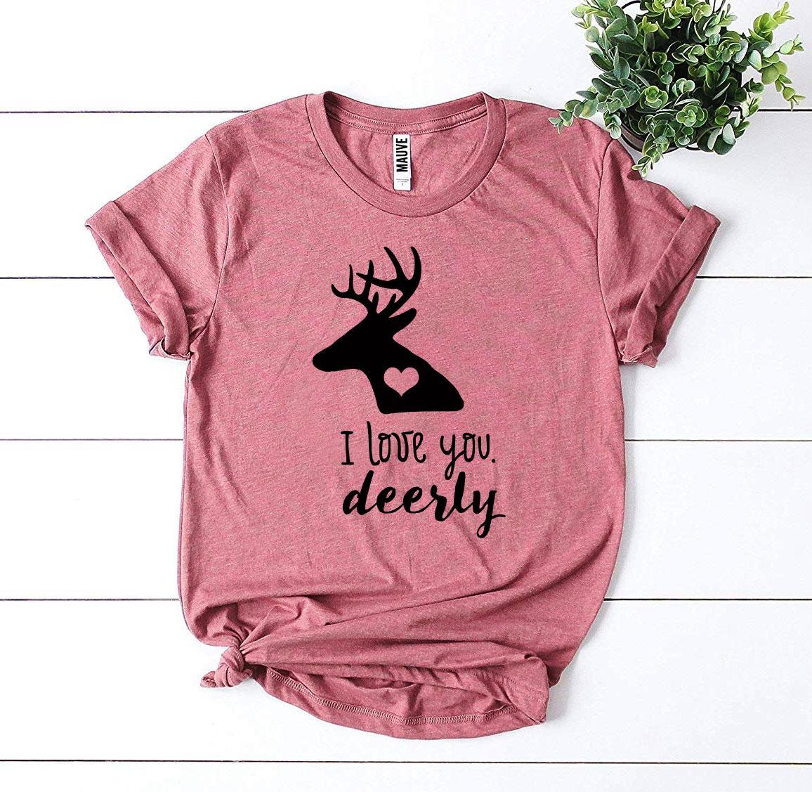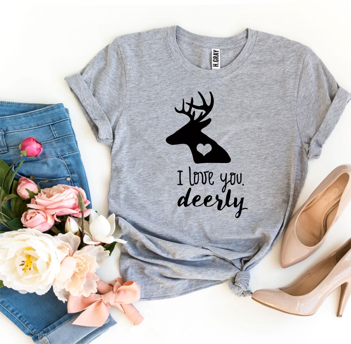 The I Love You Deerly T-shirt makes for a thoughtful gift for friends, family, or that special someone in your life. Its charming design and comfortable fit are sure to bring a smile to anyone's face. Whether it's for a birthday, anniversary, or just because, this t-shirt is a wonderful way to express your love and appreciation.