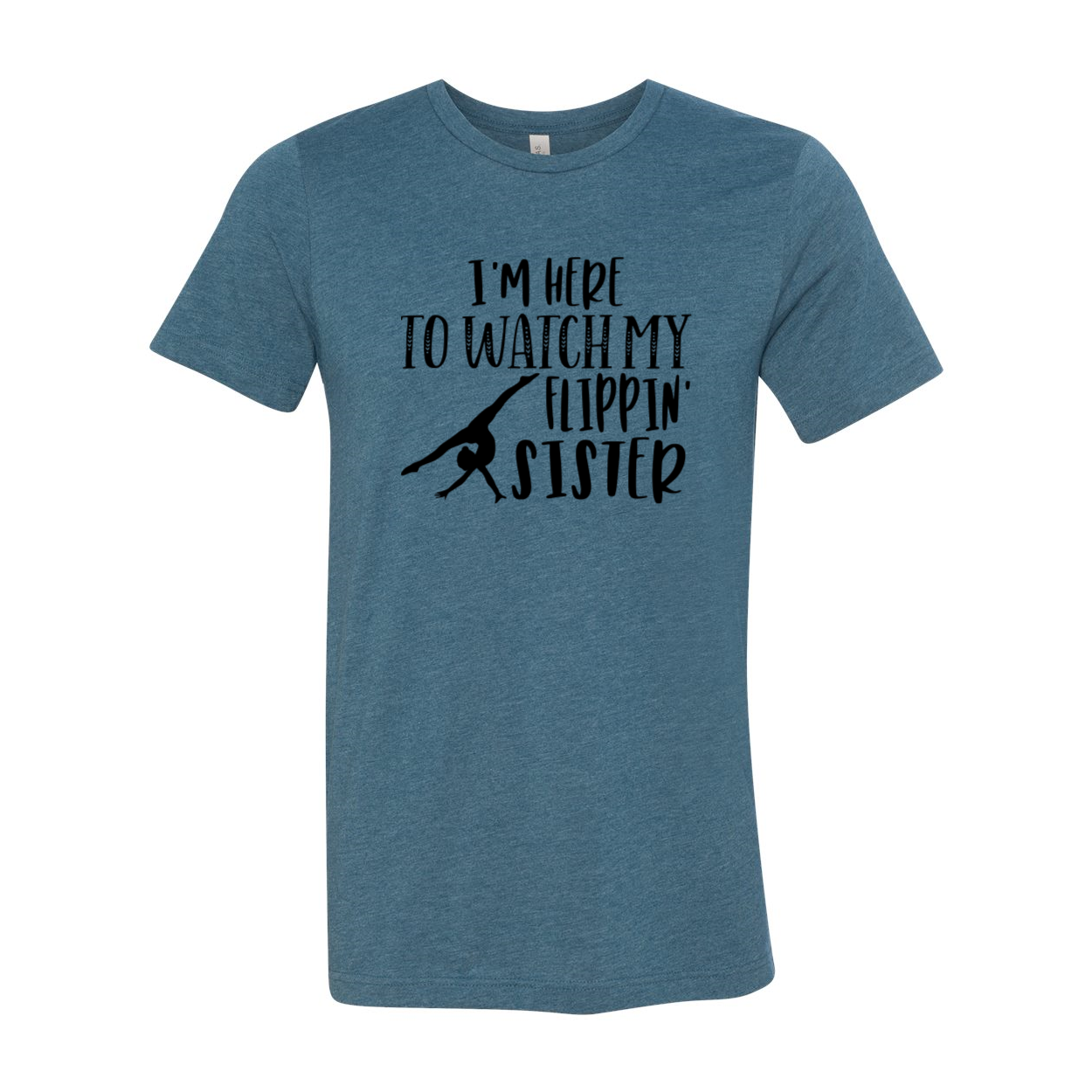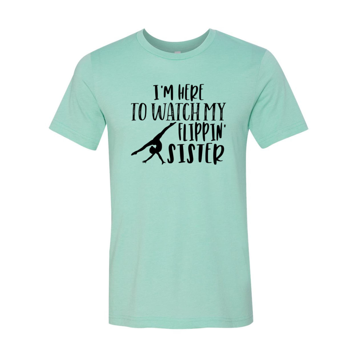 Unisex I'm Here To Watch My Flippin Sister T-shirt in various colors, showcasing its soft fabric and stylish design.