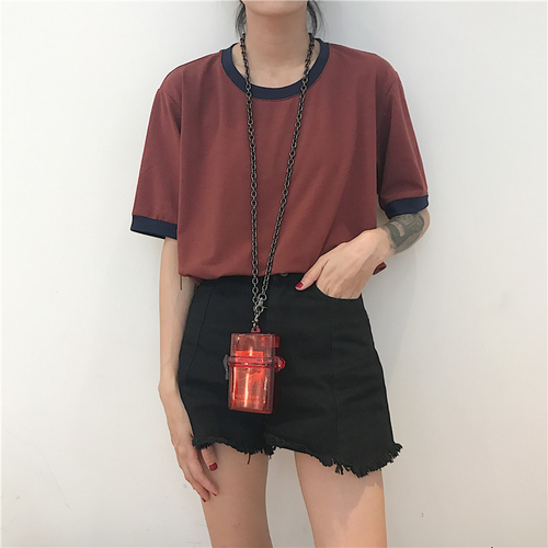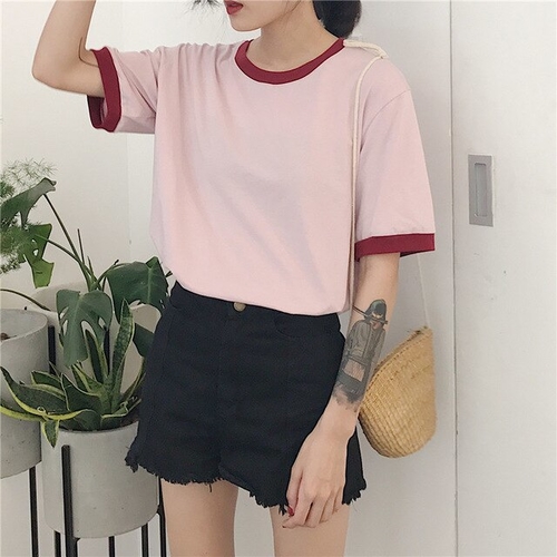Korean Tops Tee Ladies Slim Patchwork T shirt