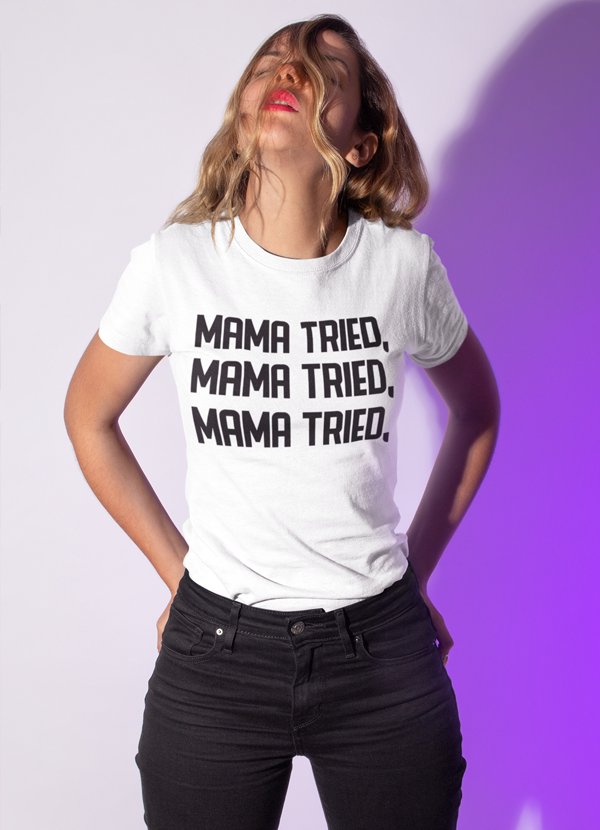 The Mama Tried Women T-shirt is designed to be versatile, making it easy to style for any occasion. Pair it with your favorite jeans for a casual look, or dress it up with a skirt and accessories for a night out. The possibilities are endless, and with its unique design, you can express your personality and creativity through your clothing.
