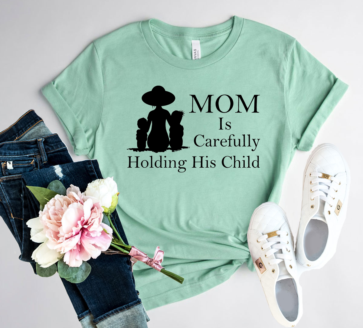 In summary, the Mom Is Carefully Holding His Child Shirt is not just a piece of clothing; it’s a statement of love and comfort. With its premium fabric, perfect fit, and stylish design, it’s an essential addition to your collection. Don’t miss out on the chance to own this versatile and fashionable T-shirt!