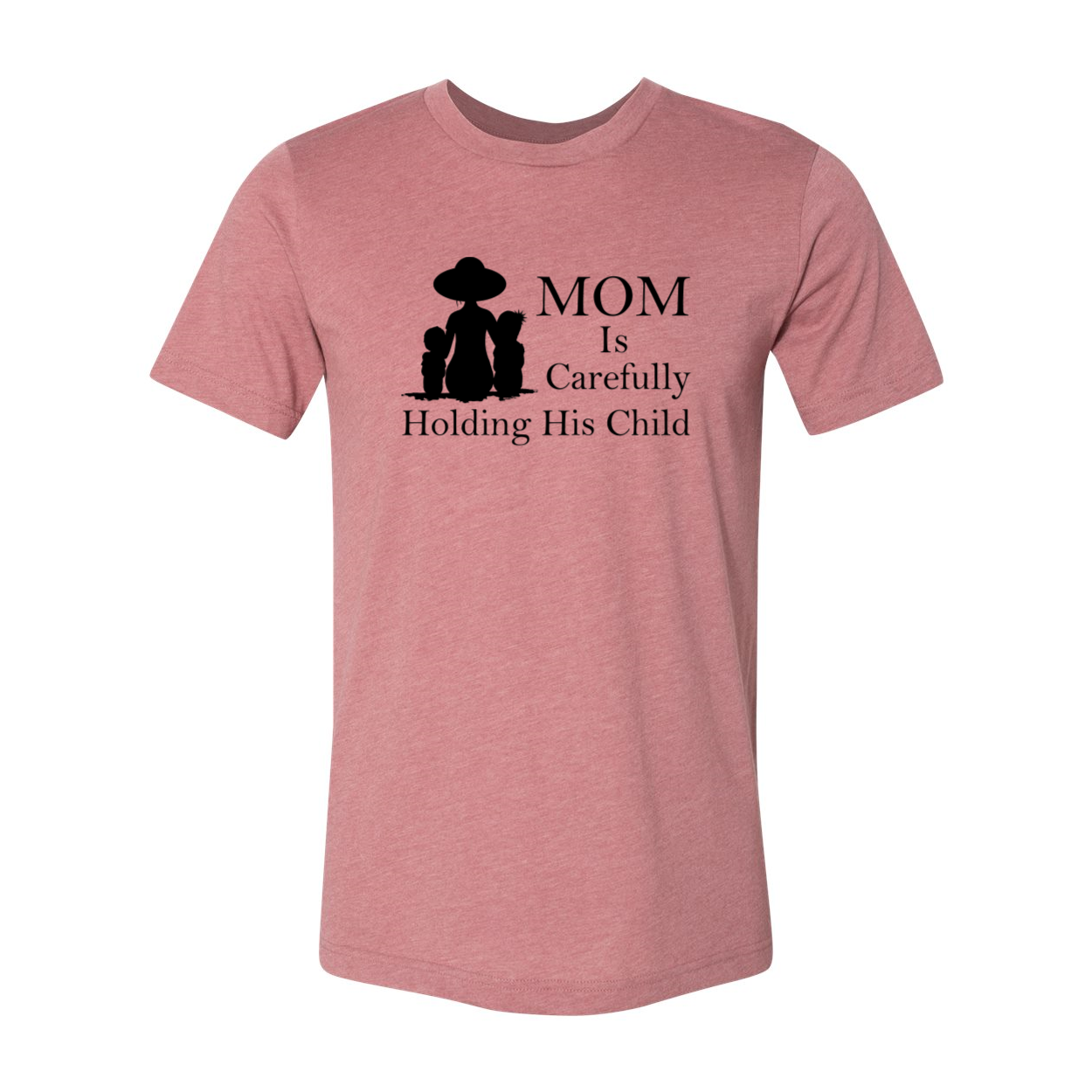 The Mom Is Carefully Holding His Child Shirt is designed to fit like a well-loved favorite. It features a slightly slimmer body and shorter sleeves, making it a flattering choice for all body types. The classic crew neck design adds a timeless touch, while the 1x1 rib knit neck ensures a comfortable fit that won't stretch out over time.