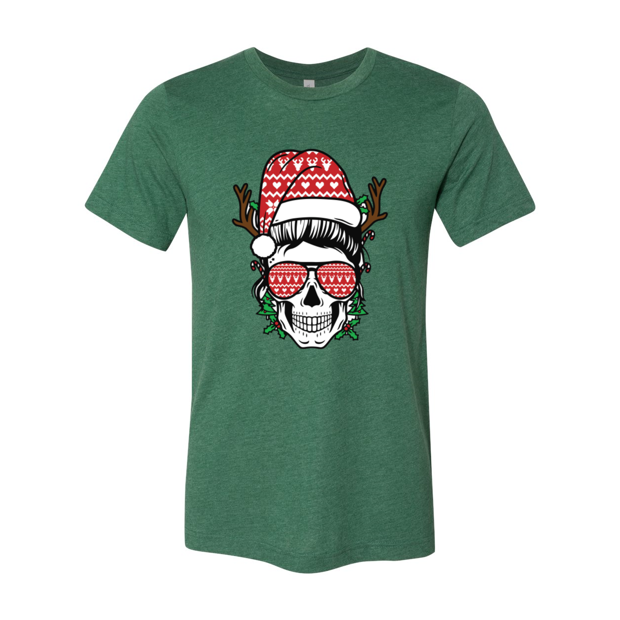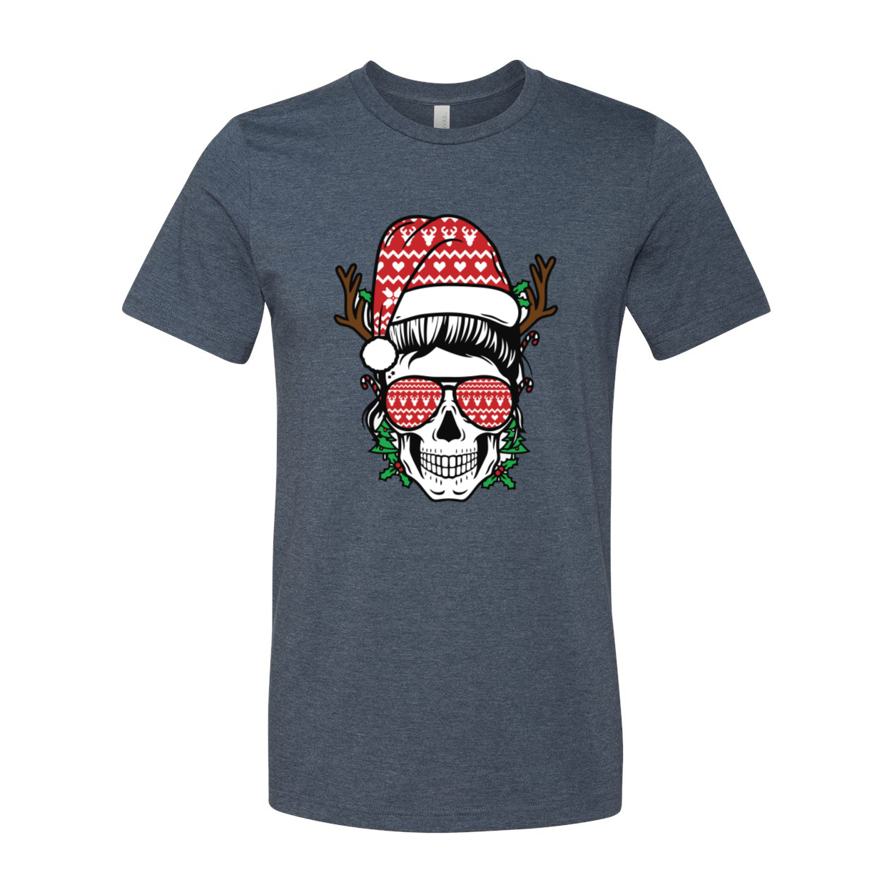 Mom Skull Christmas Shirt featuring a trendy skull design on a soft cotton fabric, available in multiple colors.