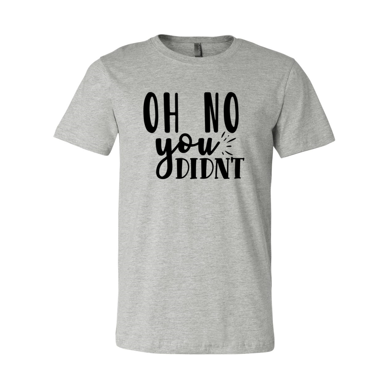 The Oh No You Didn't Shirt boasts a slightly slimmer body and shorter sleeves, giving it a modern and trendy silhouette. The classic crew neck design makes it easy to pair with any outfit, whether you're wearing it with jeans, shorts, or a skirt. The 1x1 rib knit neck adds a touch of sophistication, while the tear-away label ensures maximum comfort without any irritation.