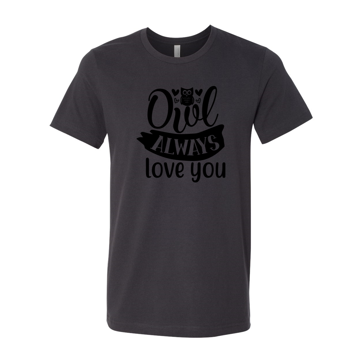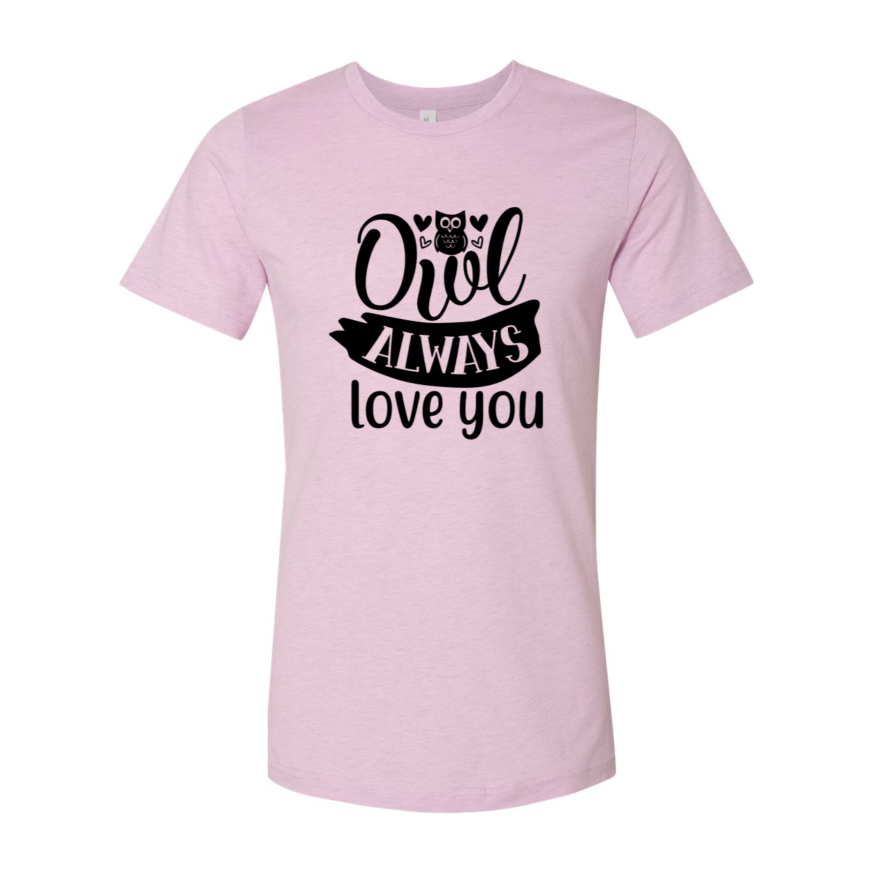 A comfortable unisex T-shirt featuring an owl graphic and the text 'Owl Always Love You', available in various colors.