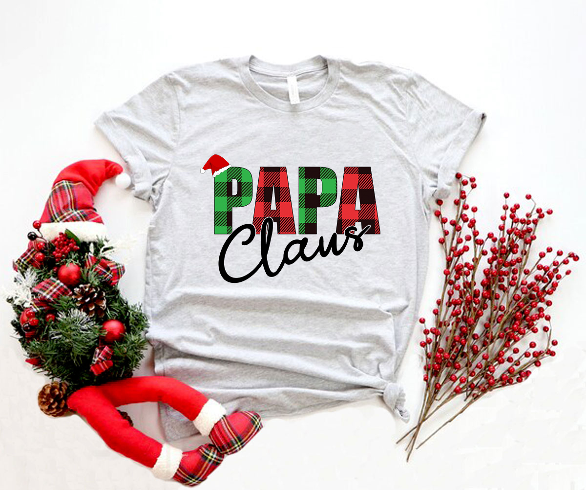 A stylish Papa Claus Shirt made from soft ring spun cotton, featuring a classic crew neck and available in multiple colors.