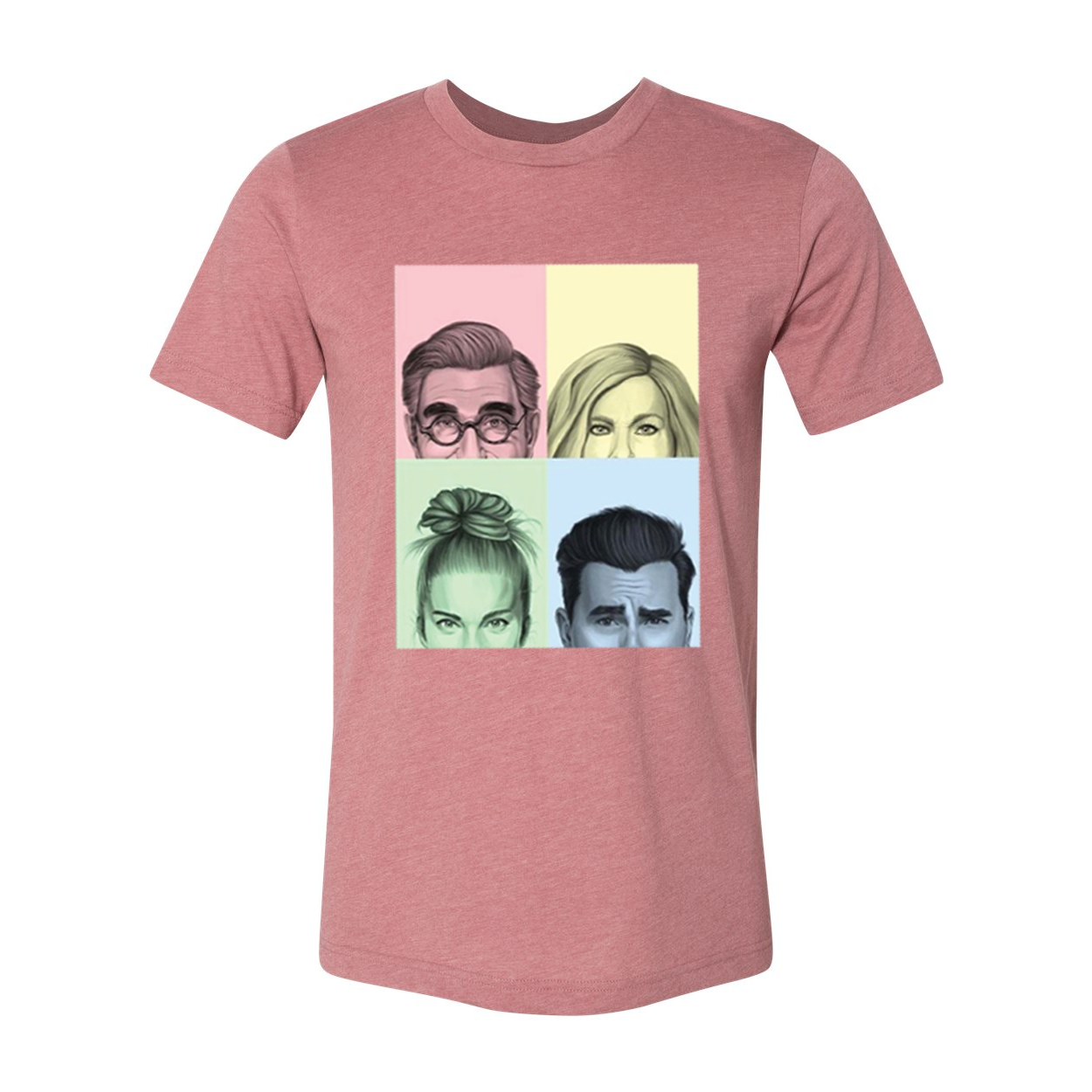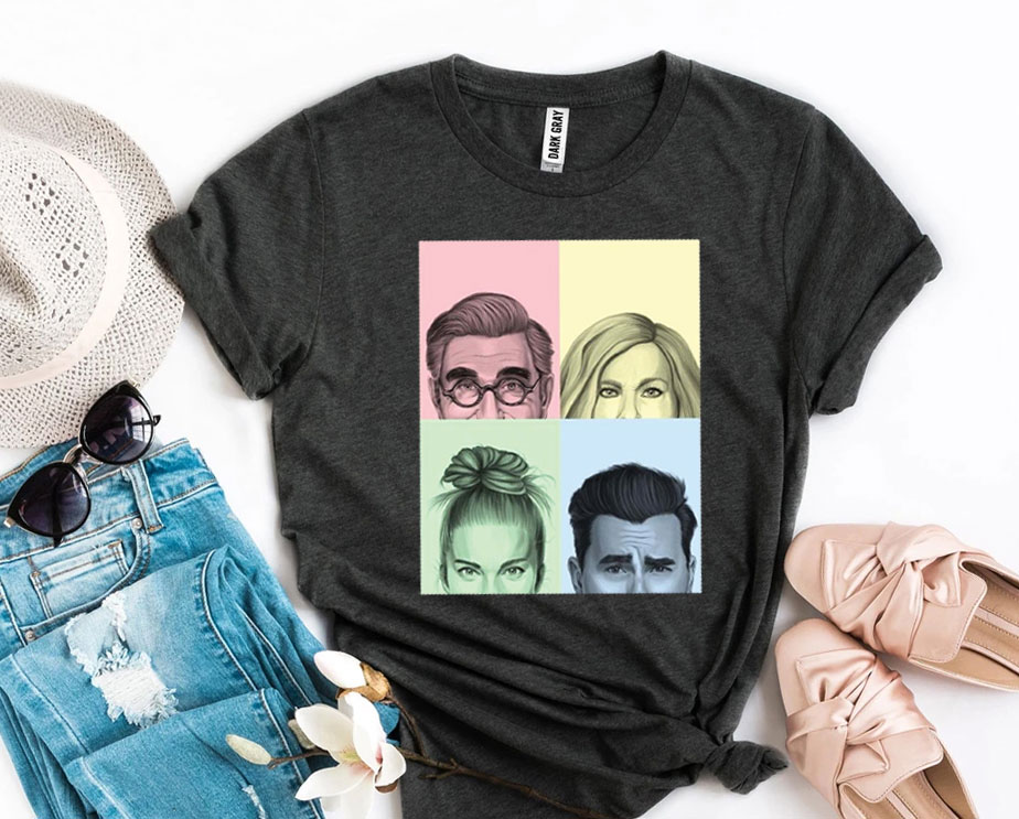 Schitts Creek T-shirt in various colors, showcasing its soft fabric and stylish design.