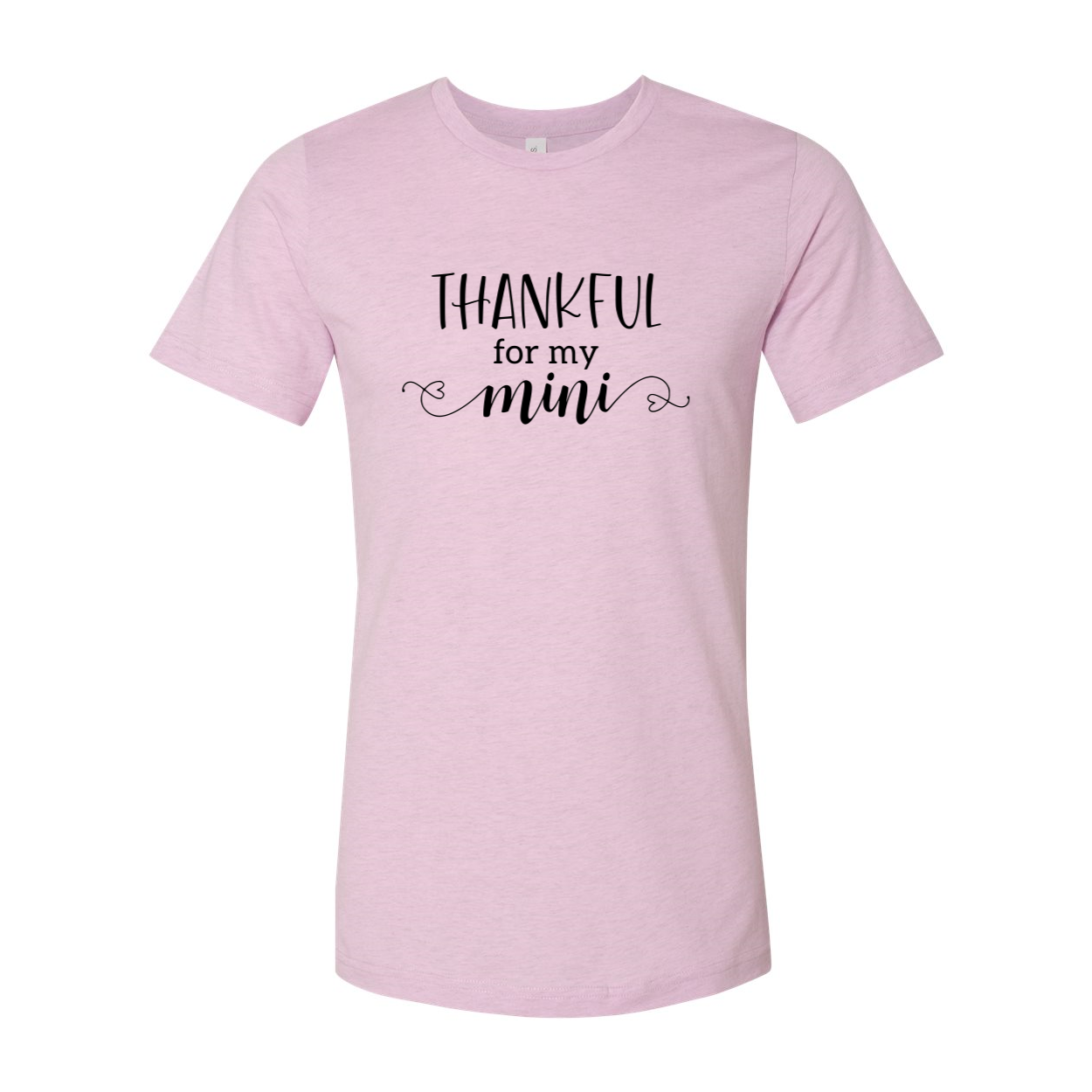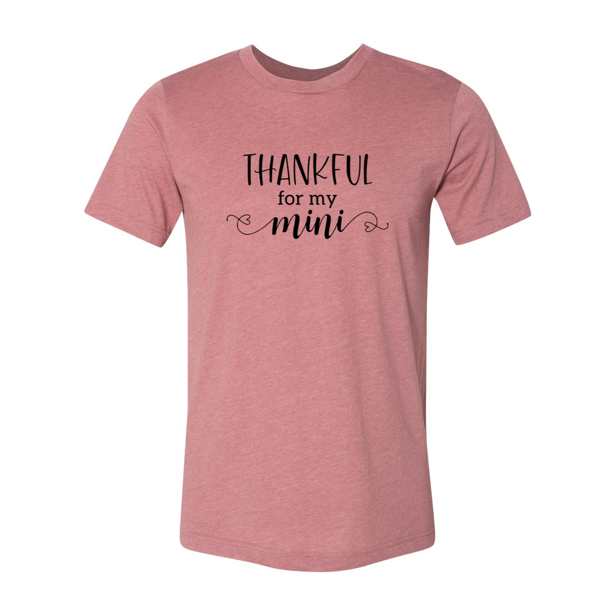 The Thankful For My Mini Shirt features a classic crew neck and short sleeves, making it a timeless piece that can be paired with any outfit. The slightly slimmer body and shorter sleeves add a modern touch, ensuring you look stylish while feeling comfortable. The 1x1 rib knit neck provides additional stretch and durability, making this shirt a reliable choice for everyday wear.