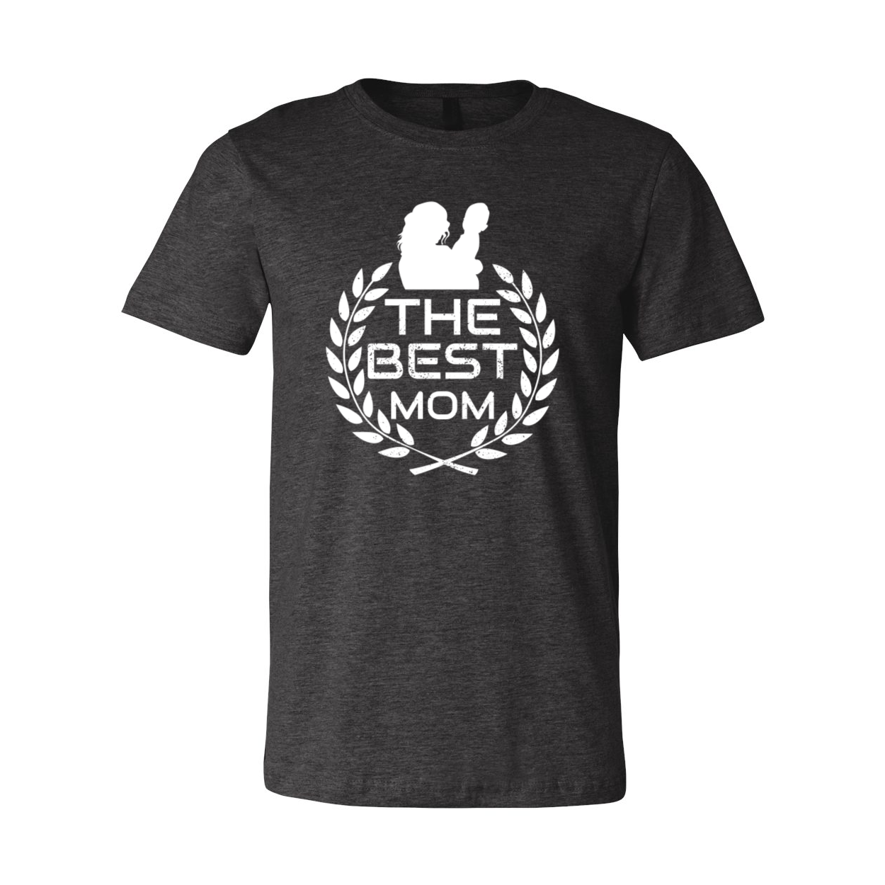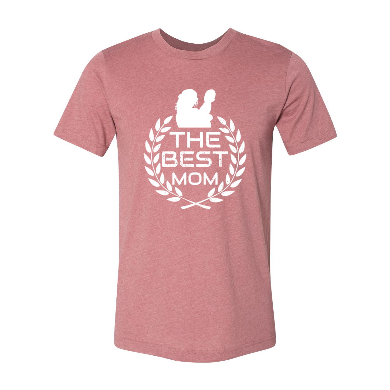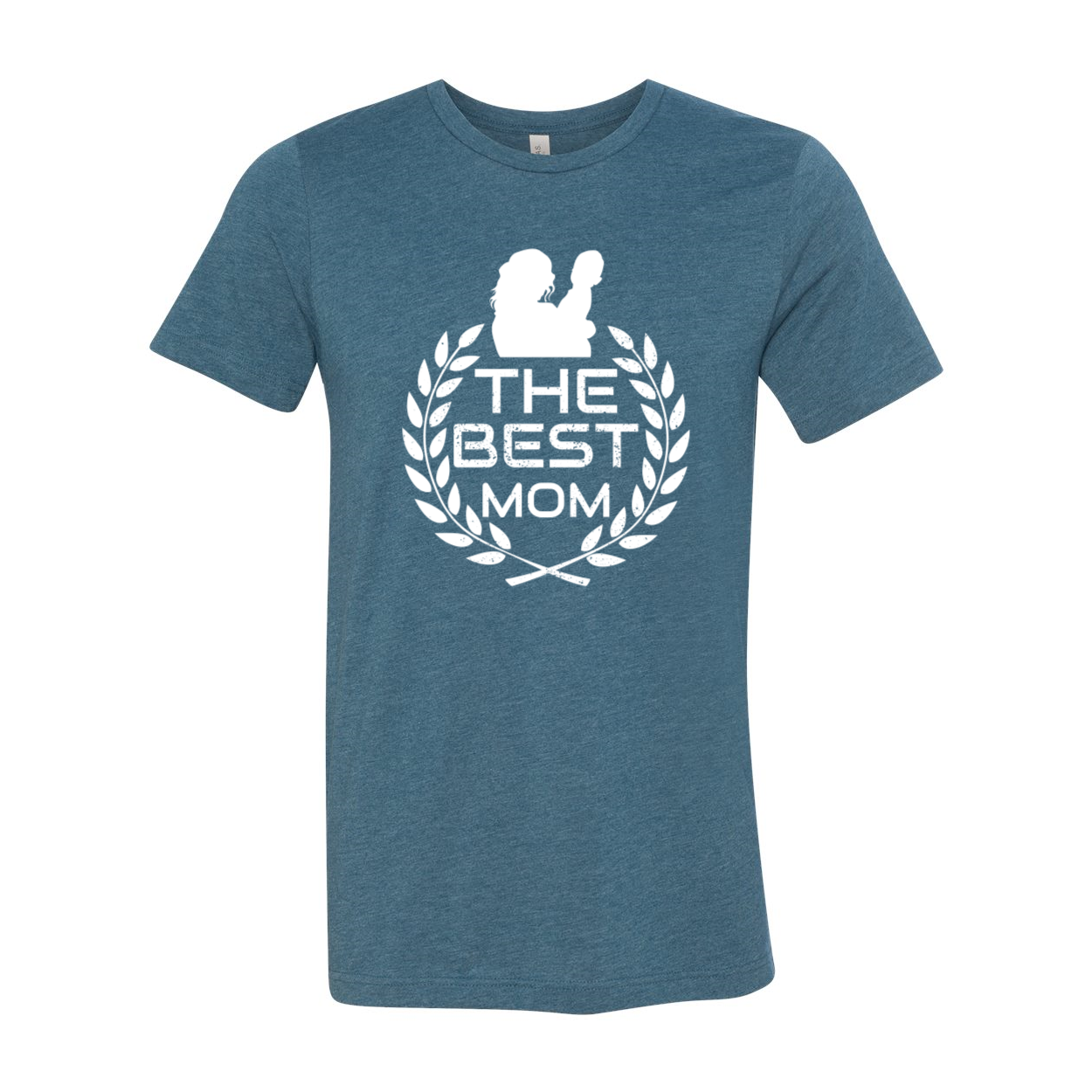A stylish unisex T-shirt in various colors, featuring the text 'The Best Mom Shirt' printed on it, showcasing its comfortable design and quality fabric.