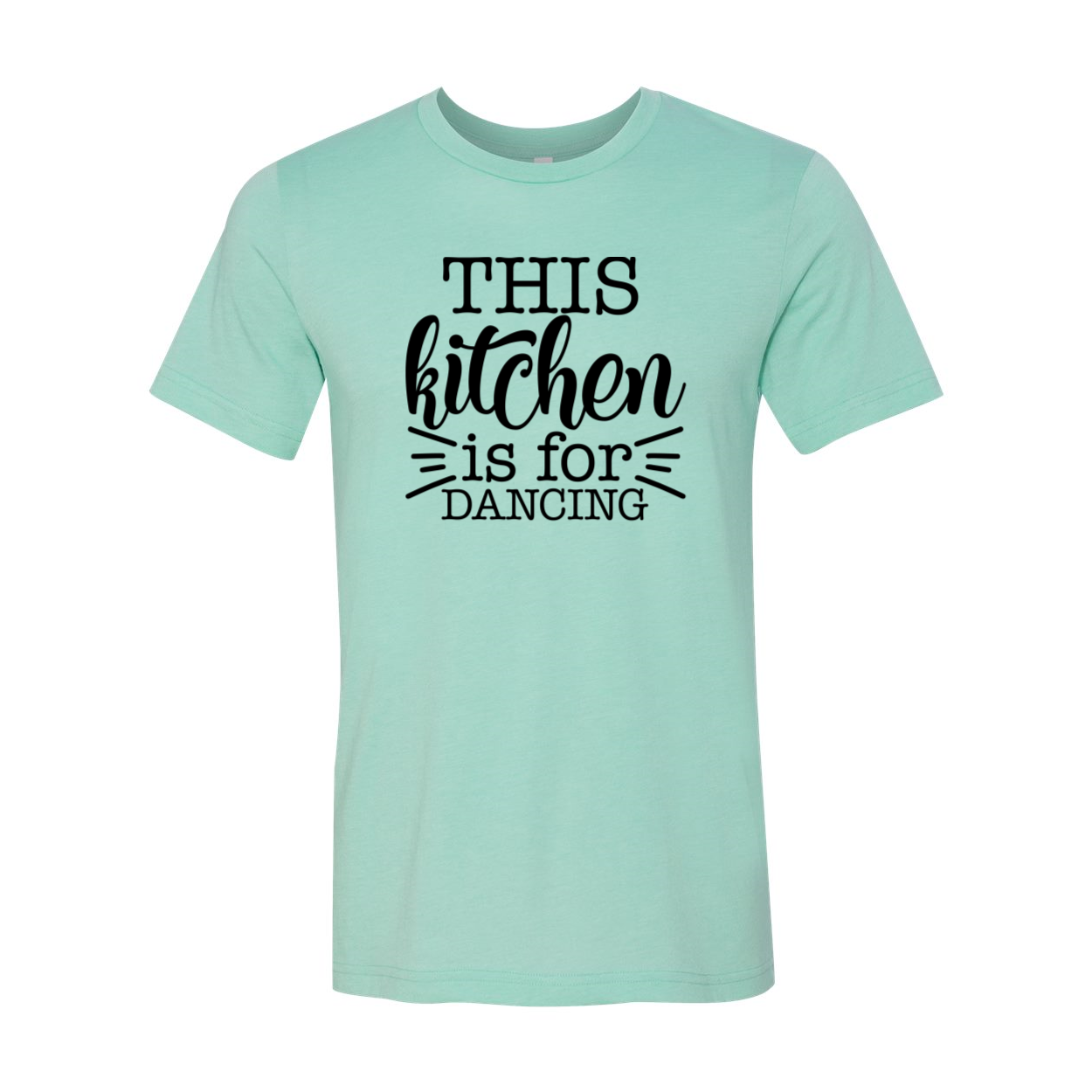 The This Kitchen Is For Dancing Shirt features a slightly slimmer body and shorter sleeves, giving it a modern and trendy look. The 1x1 rib knit neck adds a touch of sophistication, while the tear-away label ensures maximum comfort without any irritation. This shirt is designed for those who appreciate both style and comfort.