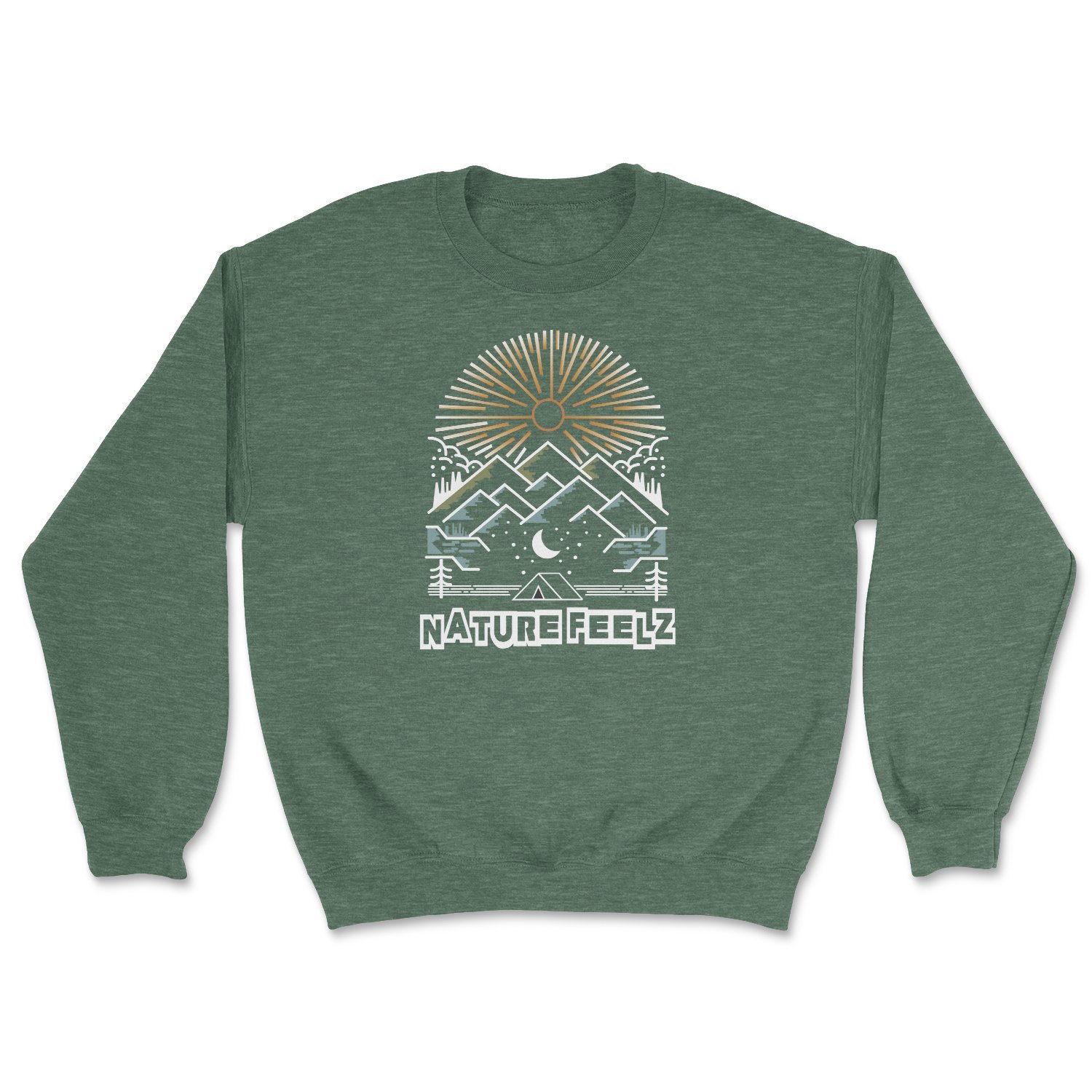 In summary, the Tribal Camp Crew Heather Green sweatshirt is a must-have for anyone looking for a comfortable, stylish, and durable piece of clothing. Its classic fit, soft fabric, and nature-inspired design make it a versatile addition to any wardrobe. Embrace the beauty of daybreak and enjoy the warmth and comfort this sweatshirt has to offer.