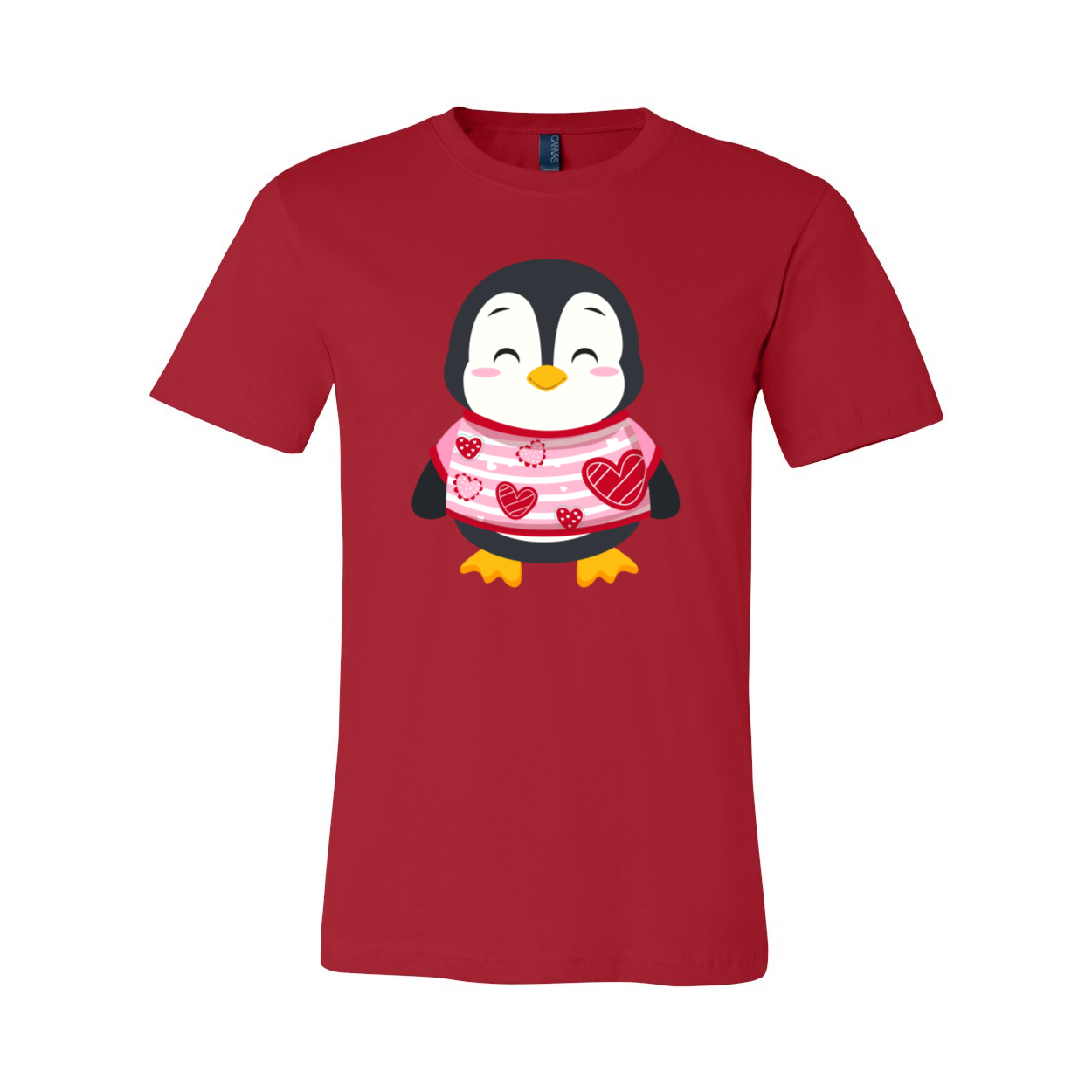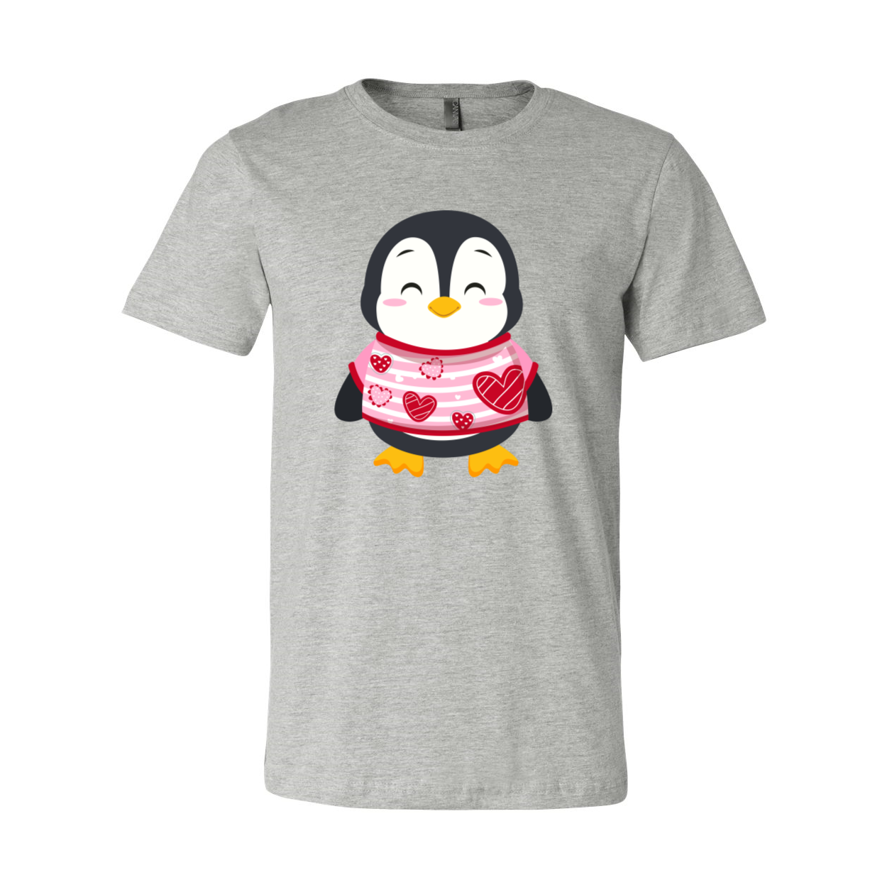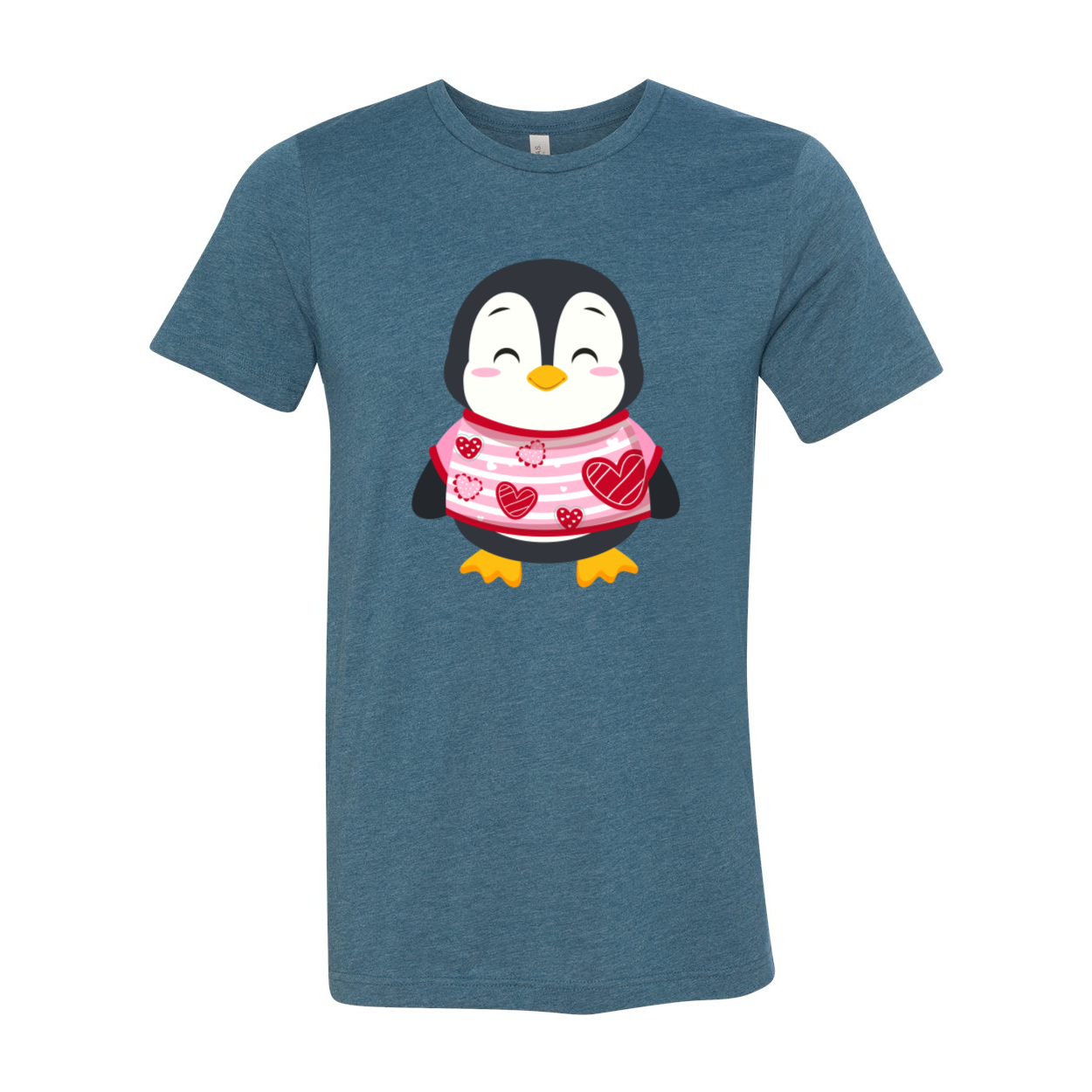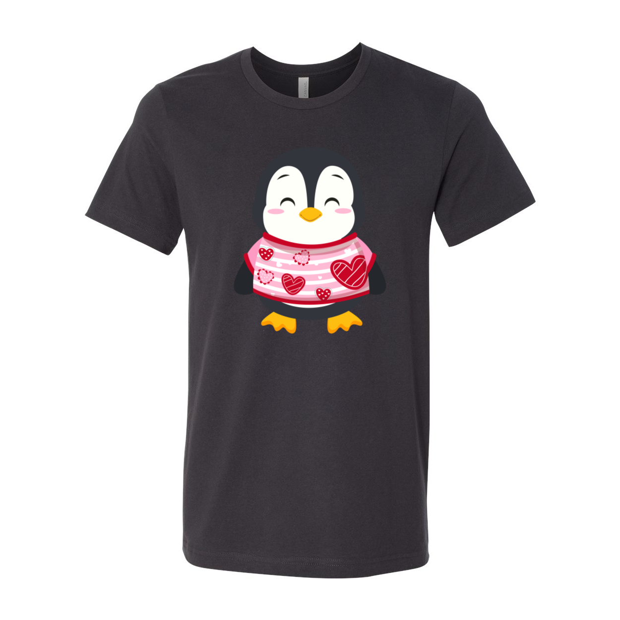 VAL0119 Valentines Penguin Shirt in various colors, showcasing a cute penguin design on a comfortable unisex T-shirt.