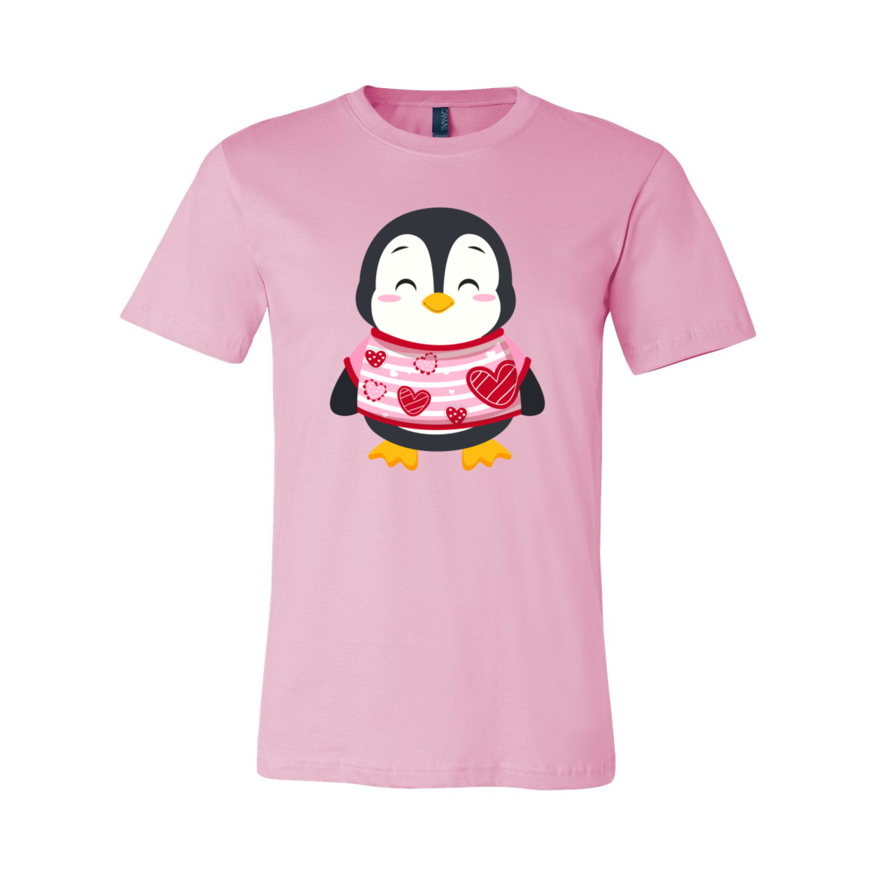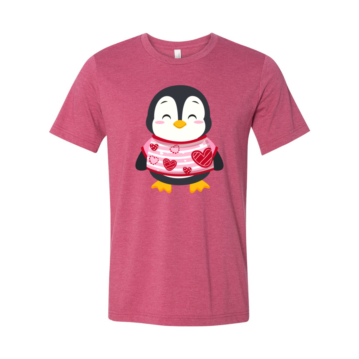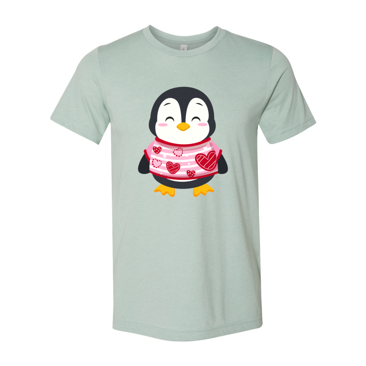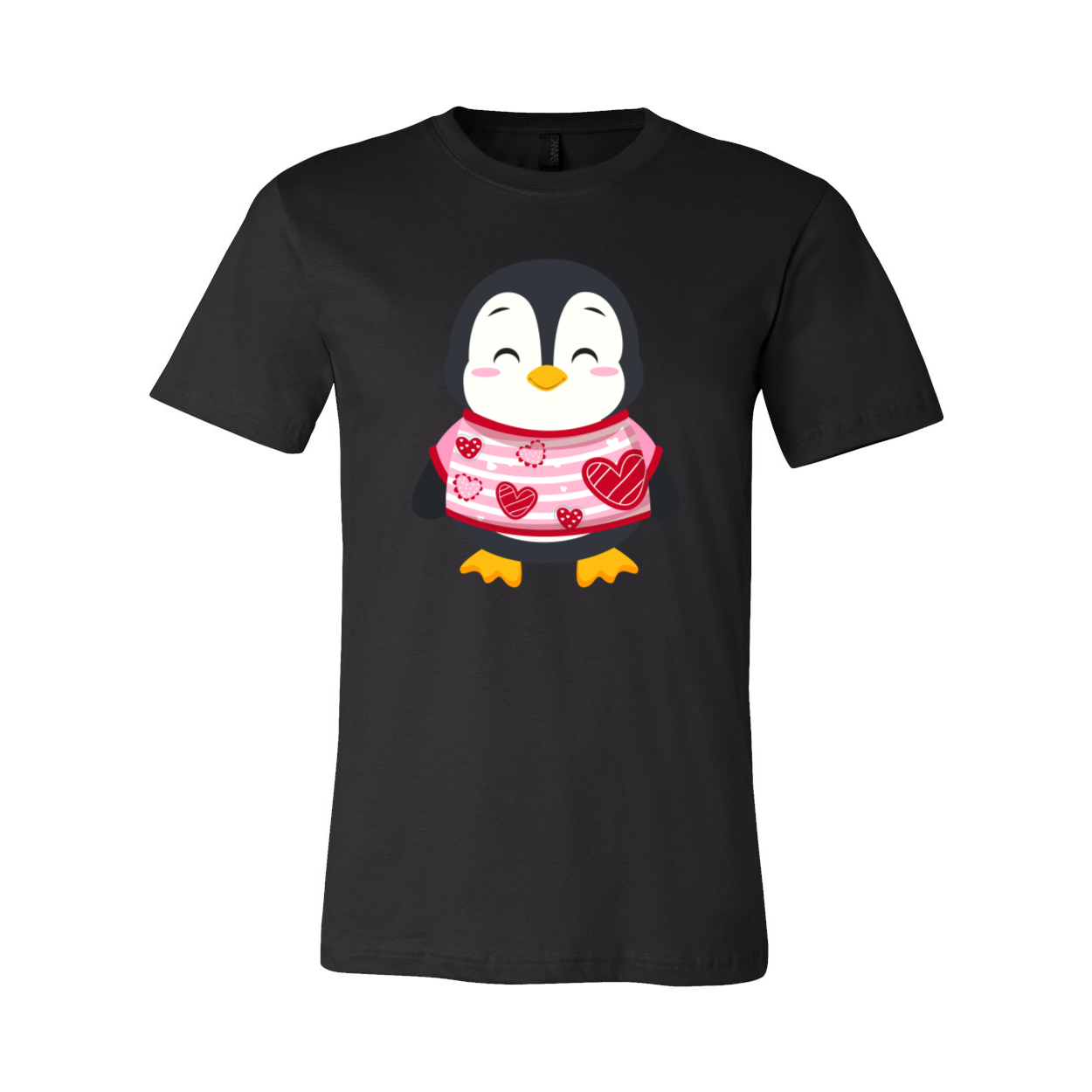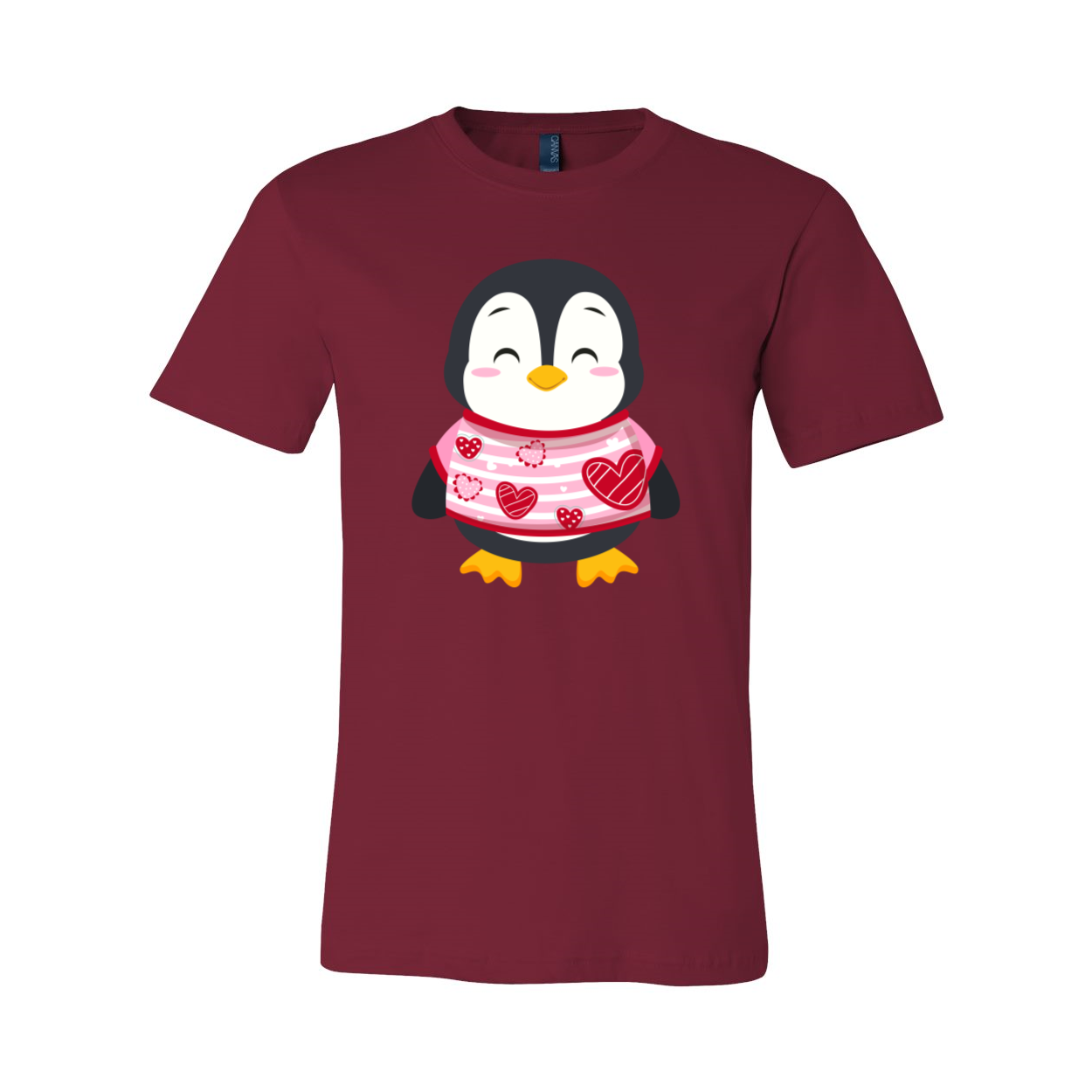 VAL0119 Valentines Penguin Shirt in various colors, showcasing a cute penguin design on a comfortable unisex T-shirt.