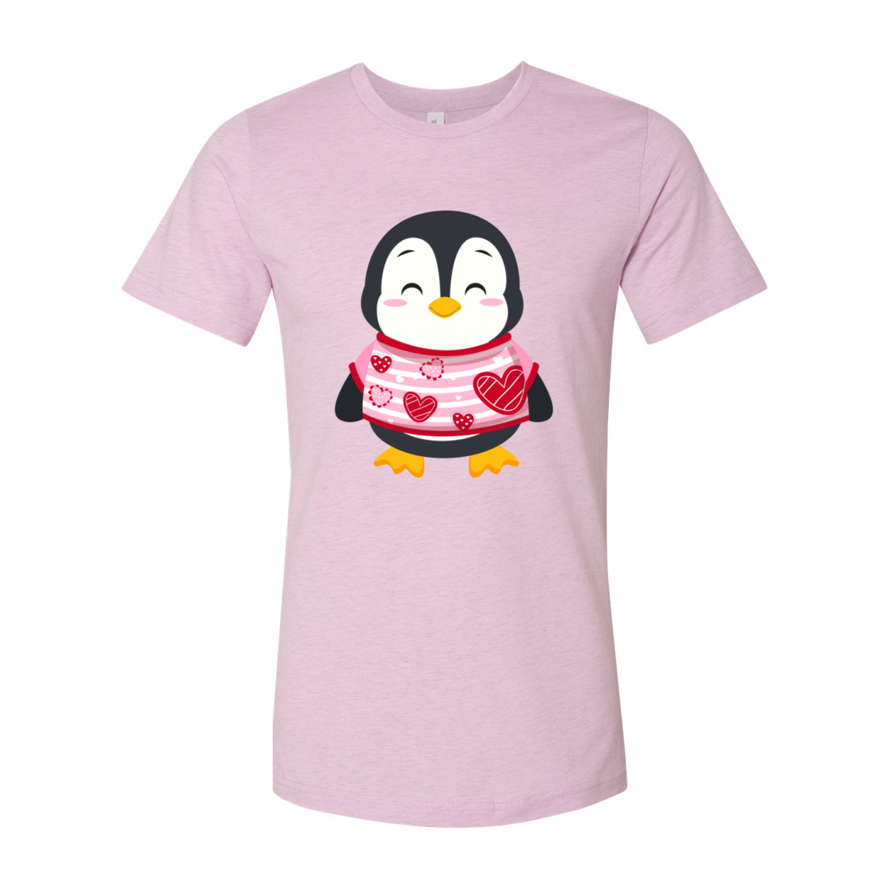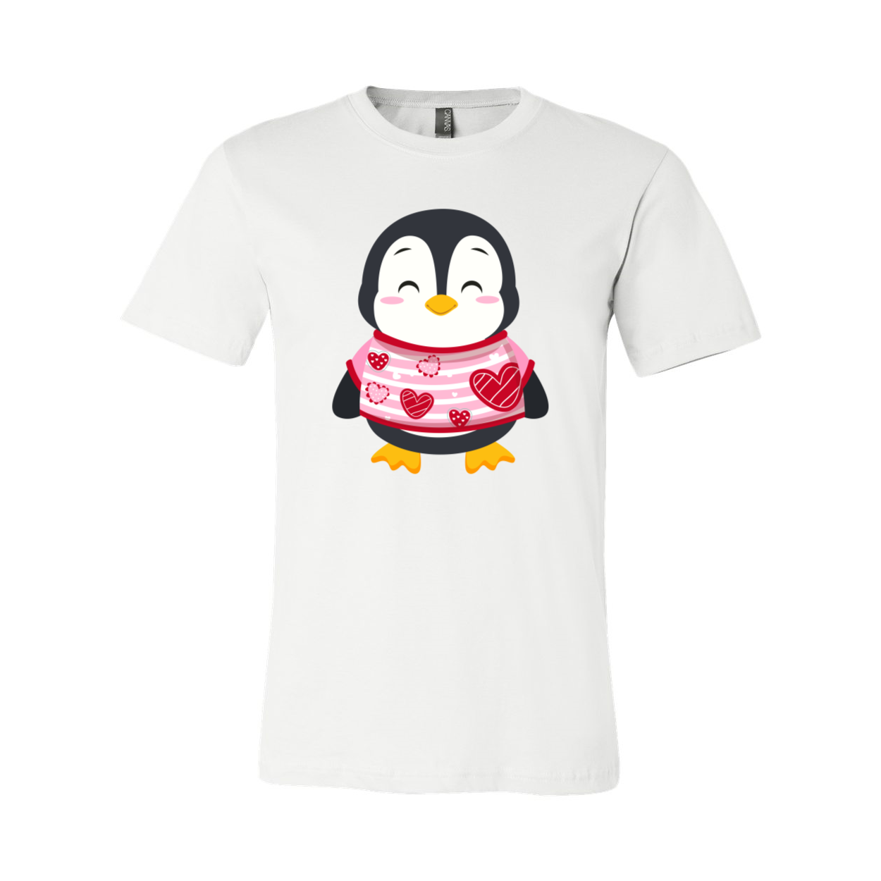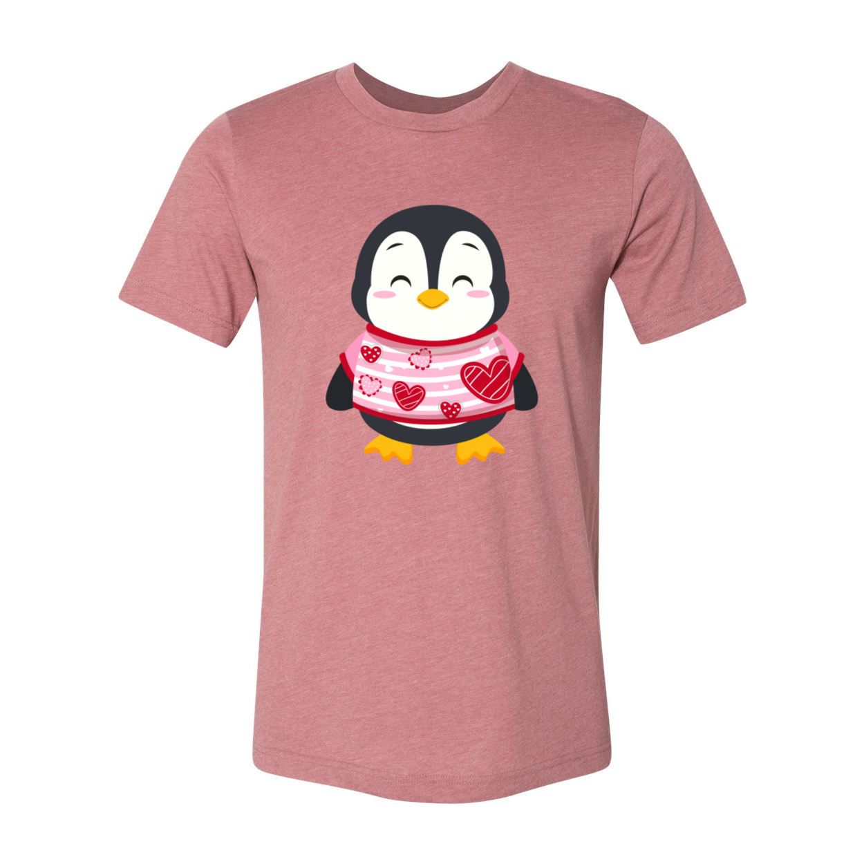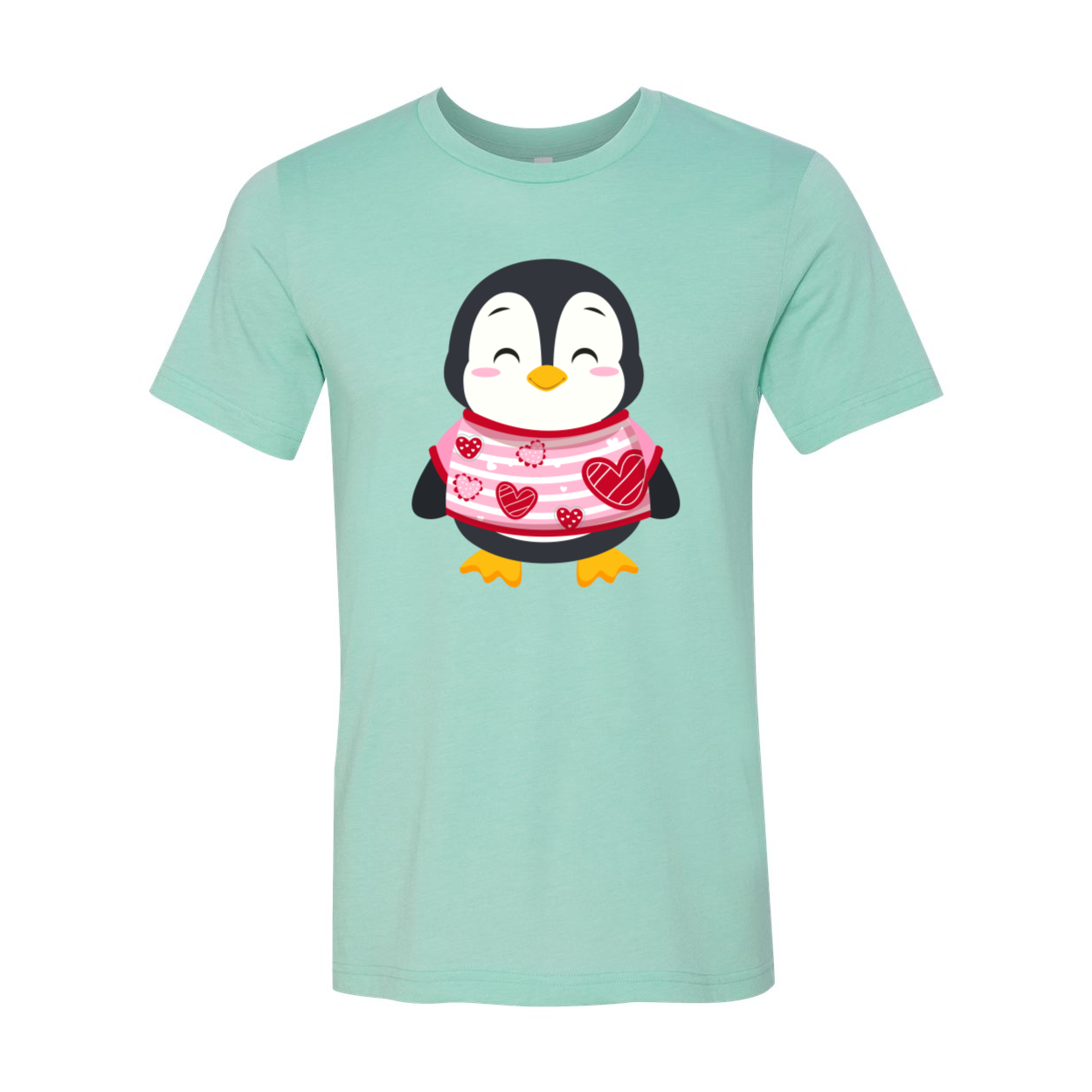 VAL0119 Valentines Penguin Shirt in various colors, showcasing a cute penguin design on a comfortable unisex T-shirt.