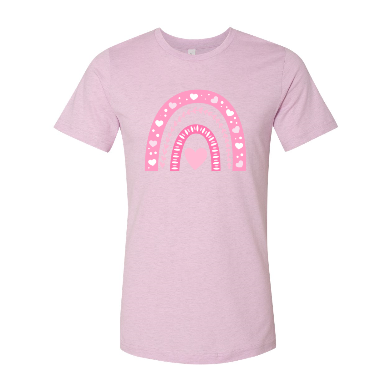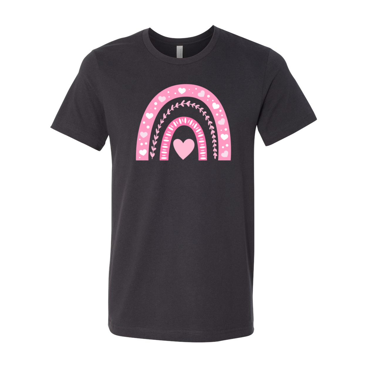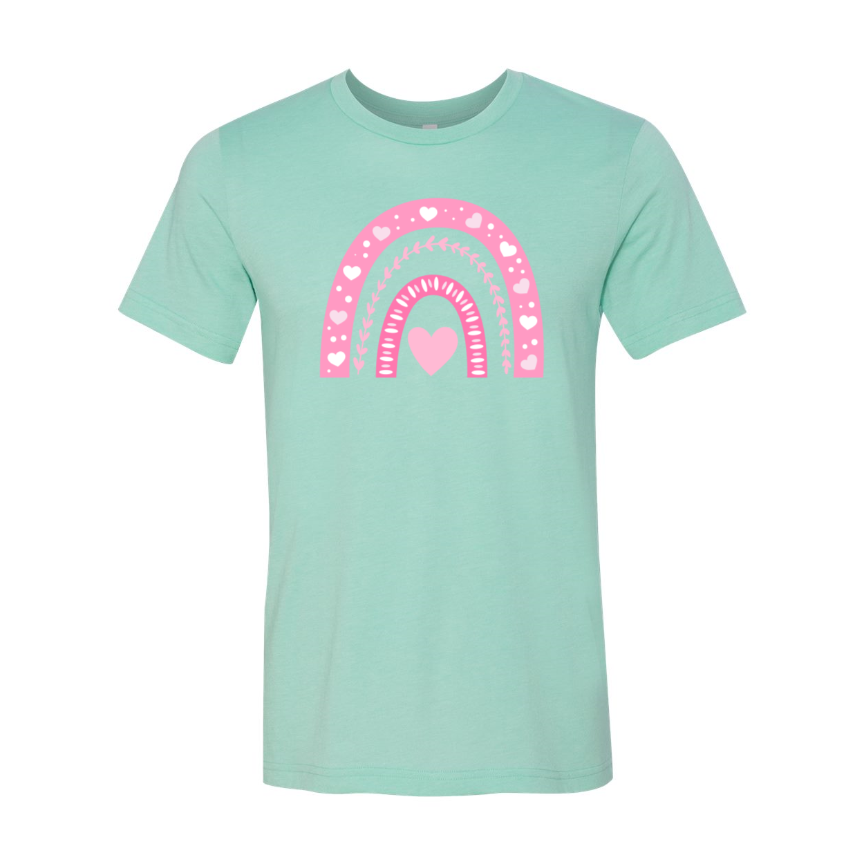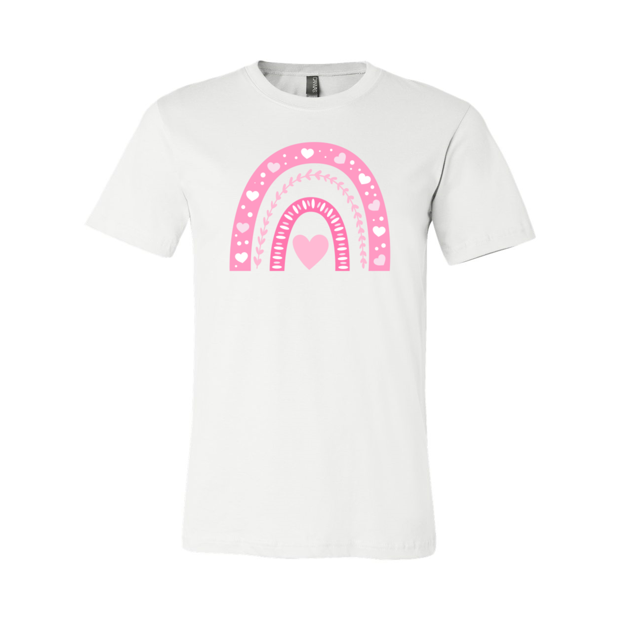 The Valentines Rainbow Shirt features a classic crew neck and short sleeves, ensuring a comfortable fit that feels like a well-loved favorite. The slightly slimmer body and shorter sleeves provide a modern look while maintaining the comfort you expect from a high-quality T-shirt. Whether you're dressing up for a special occasion or keeping it casual, this shirt is versatile enough to suit any style.