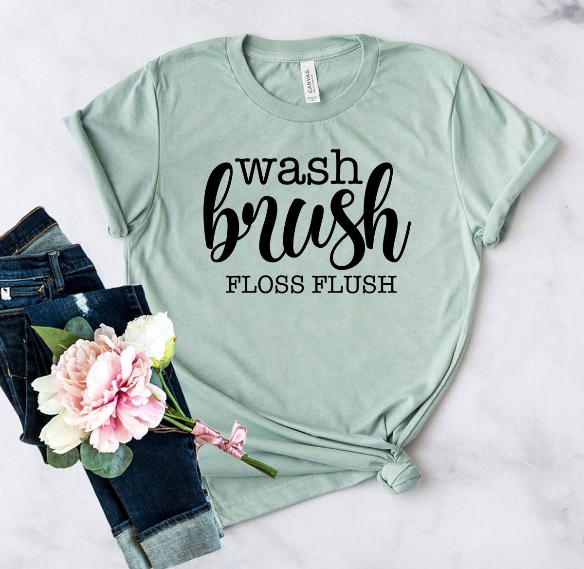 One of the standout features of the Wash Brush Floss Flush Shirt is its high-quality print. The design is printed using advanced techniques that ensure vibrant colors and sharp details. This means that your shirt will not only look great but will also stand the test of time, maintaining its appearance even after multiple washes.