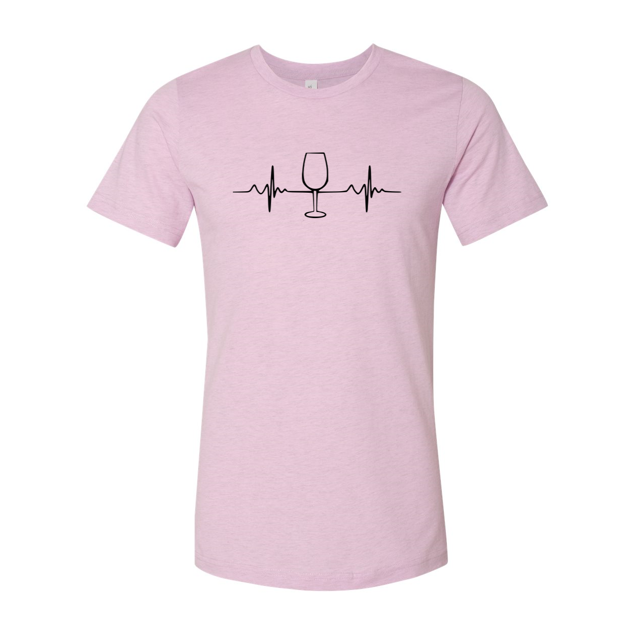 A unisex Wine Heartbeat Shirt made from soft ring spun cotton, featuring a stylish heartbeat graphic related to wine, available in multiple colors.