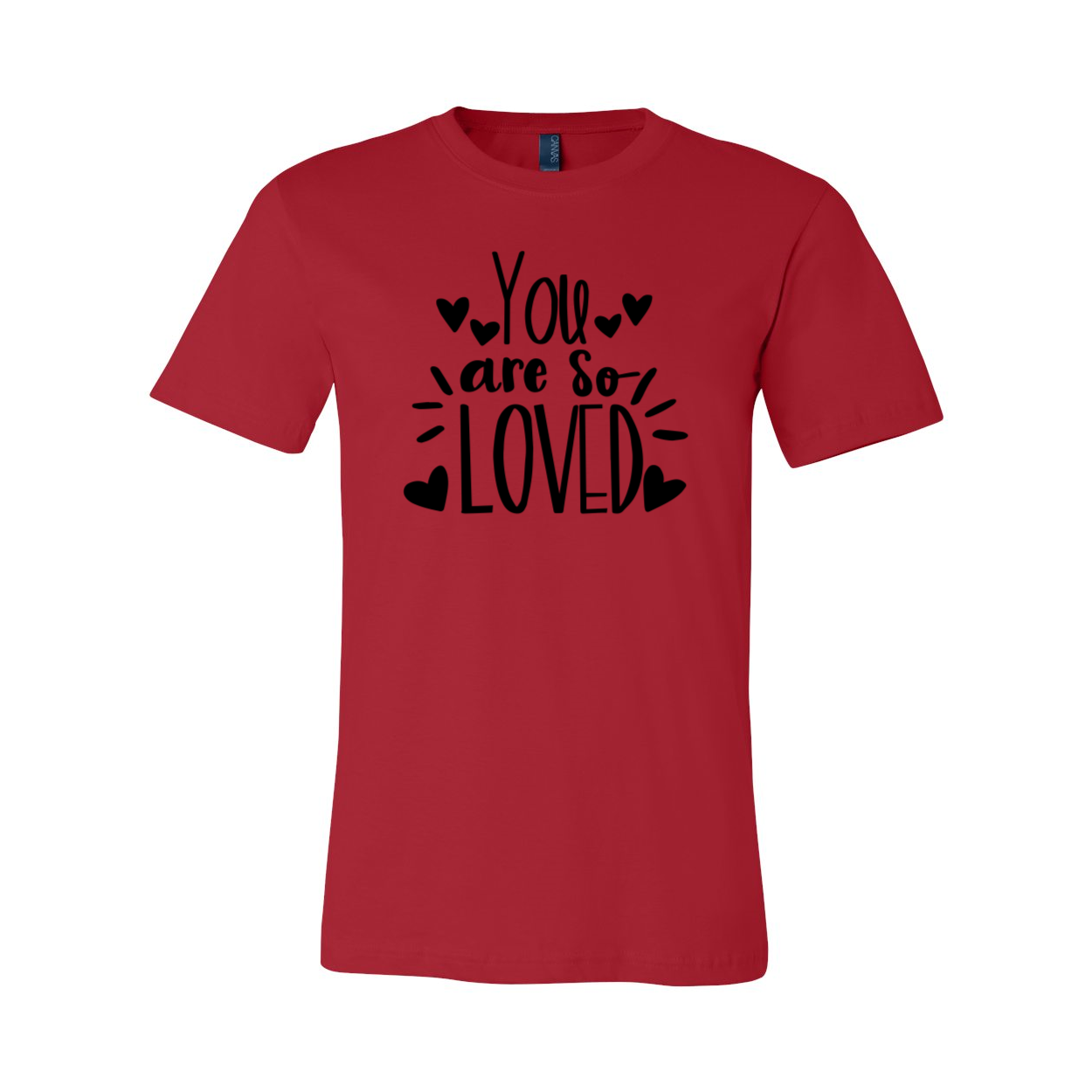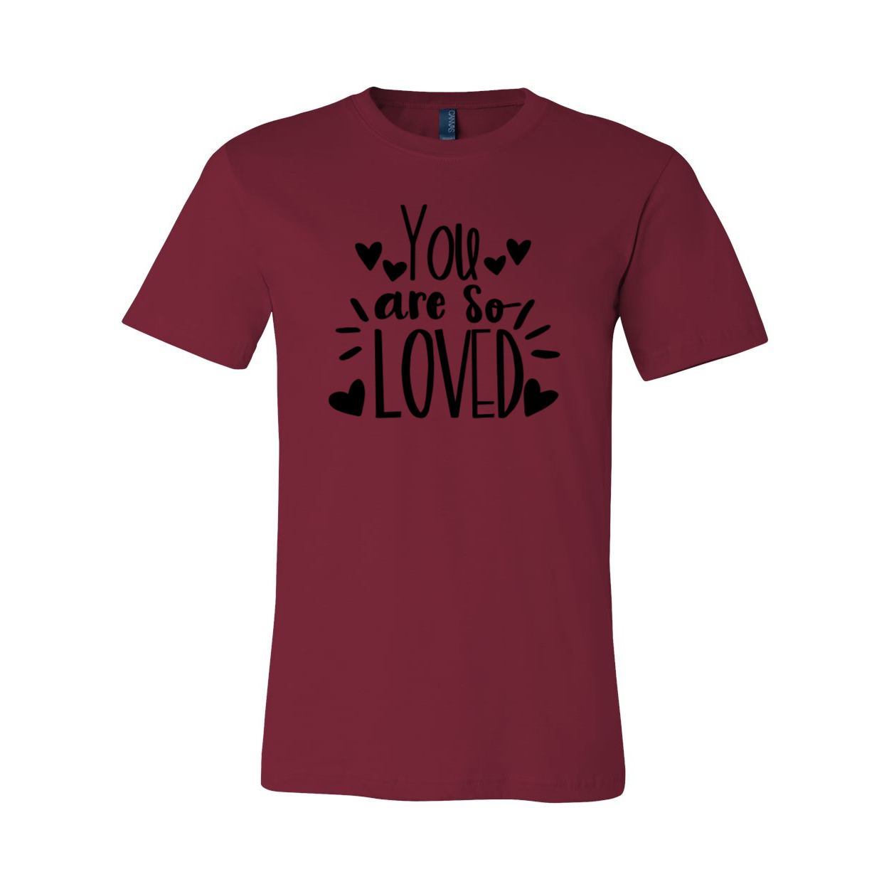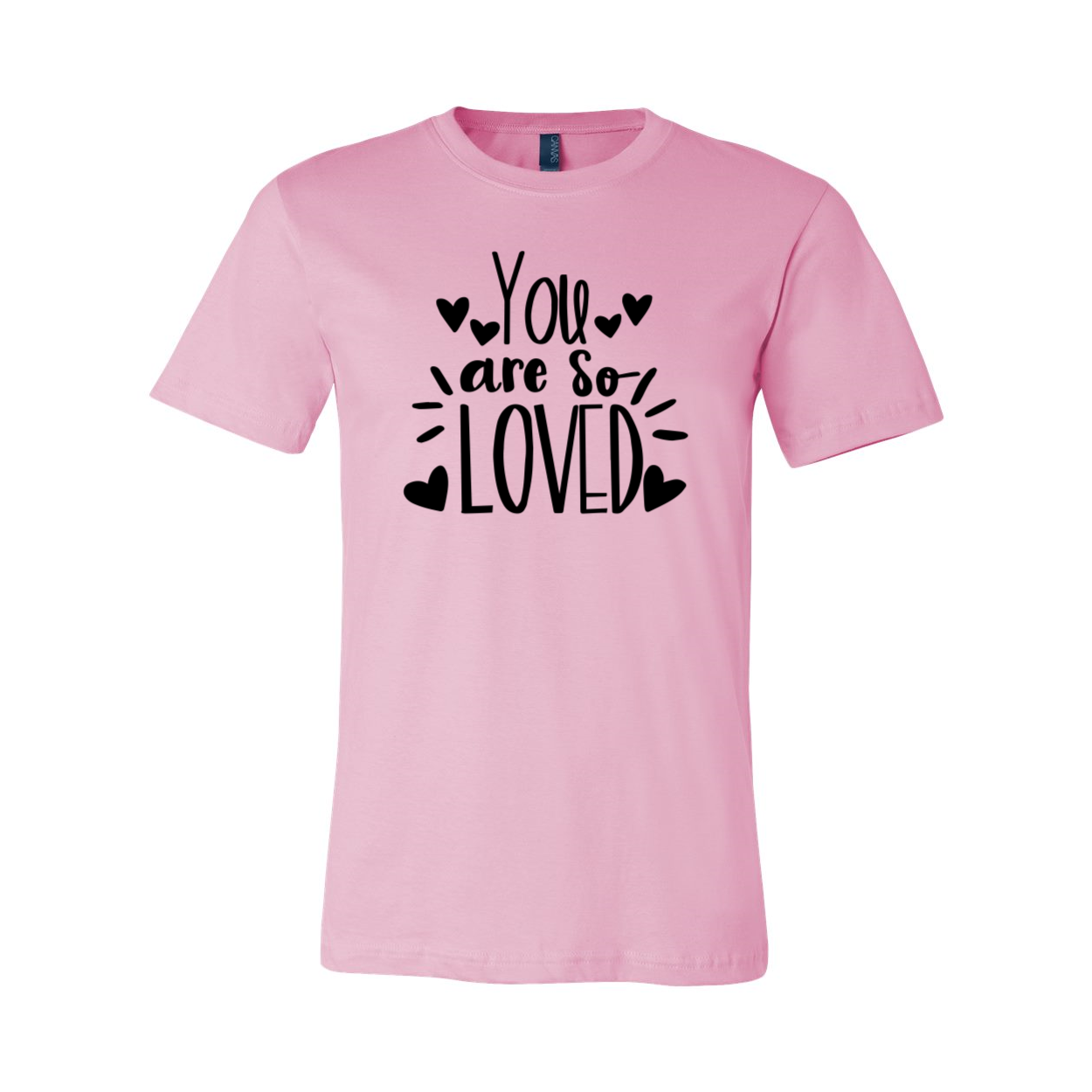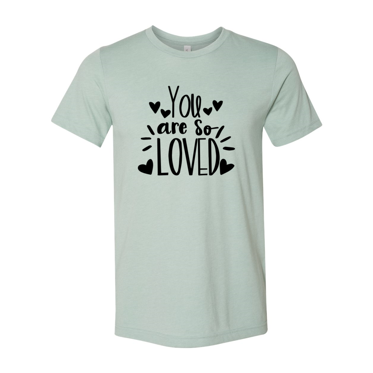 A unisex T-shirt in various colors featuring the phrase 'You Are So Loved' printed on it, made from soft ring spun cotton.