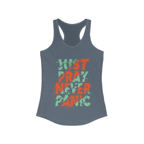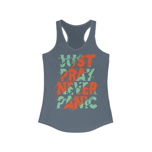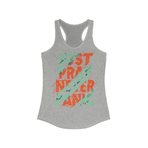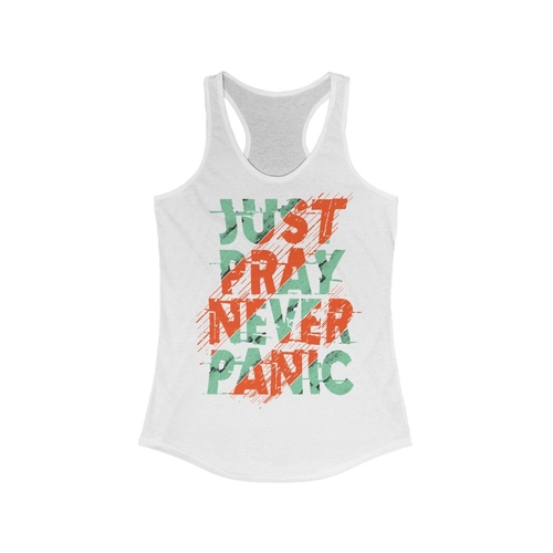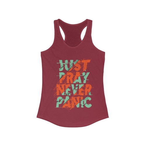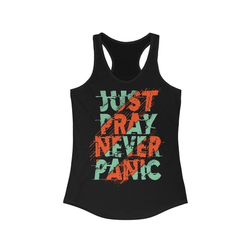 Choosing the Just Pray Never Panic Racerback Tank Top Tee means opting for a product that combines comfort, style, and a positive message. It’s perfect for those who want to express themselves while enjoying the benefits of a well-made garment. Whether you're working out or just hanging out, this tank top is sure to become a staple in your wardrobe.