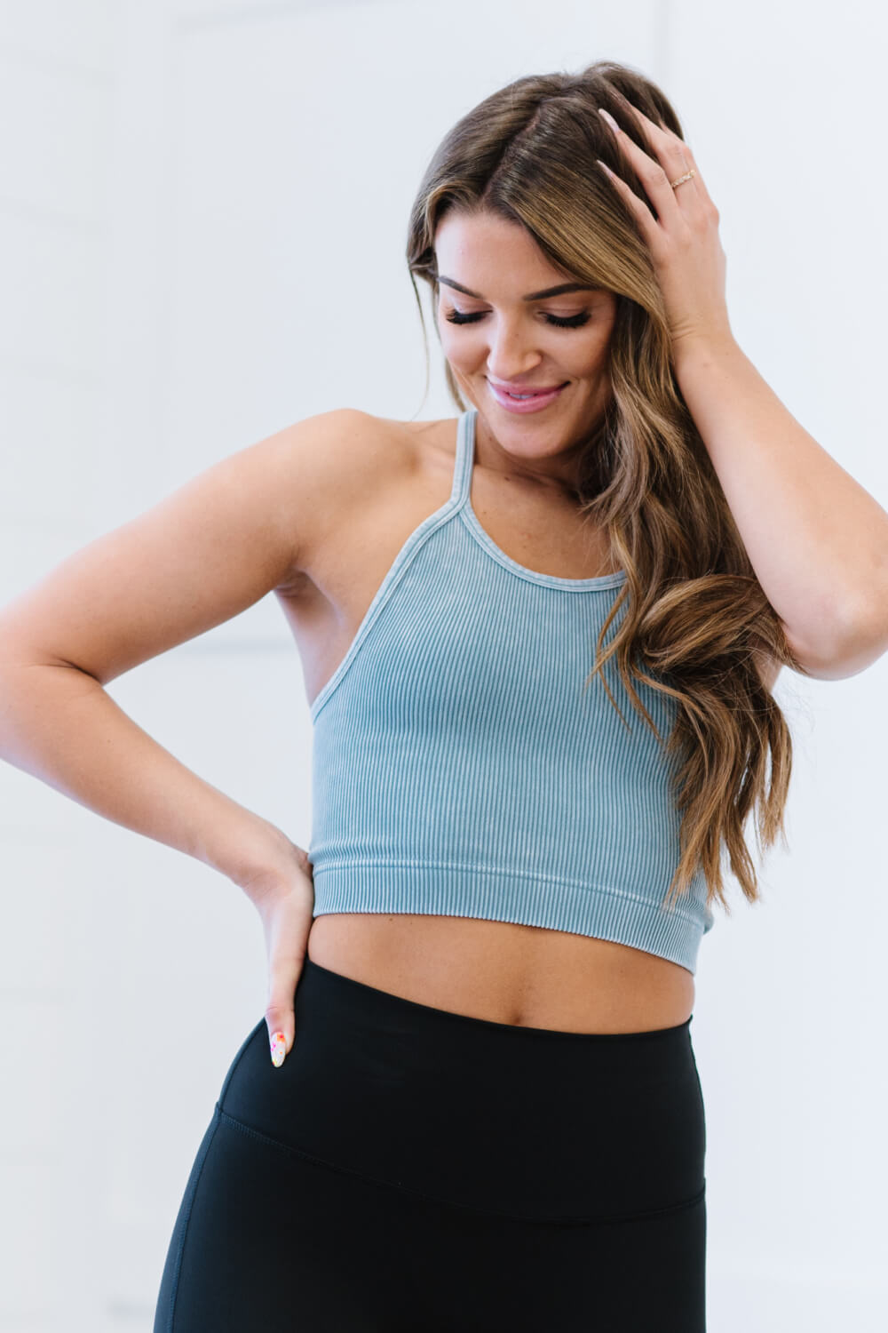 The On the Move Scoop Neck Cropped Cami is the ultimate addition to your wardrobe, designed to enhance your layering game effortlessly. This stylish cropped cami is crafted from a high-quality blend of 90% nylon and 10% spandex, ensuring a comfortable fit that moves with you. The ribbed texture adds a touch of sophistication, while the subtle mineral wash gives it a trendy, modern look that pairs well with various outfits.