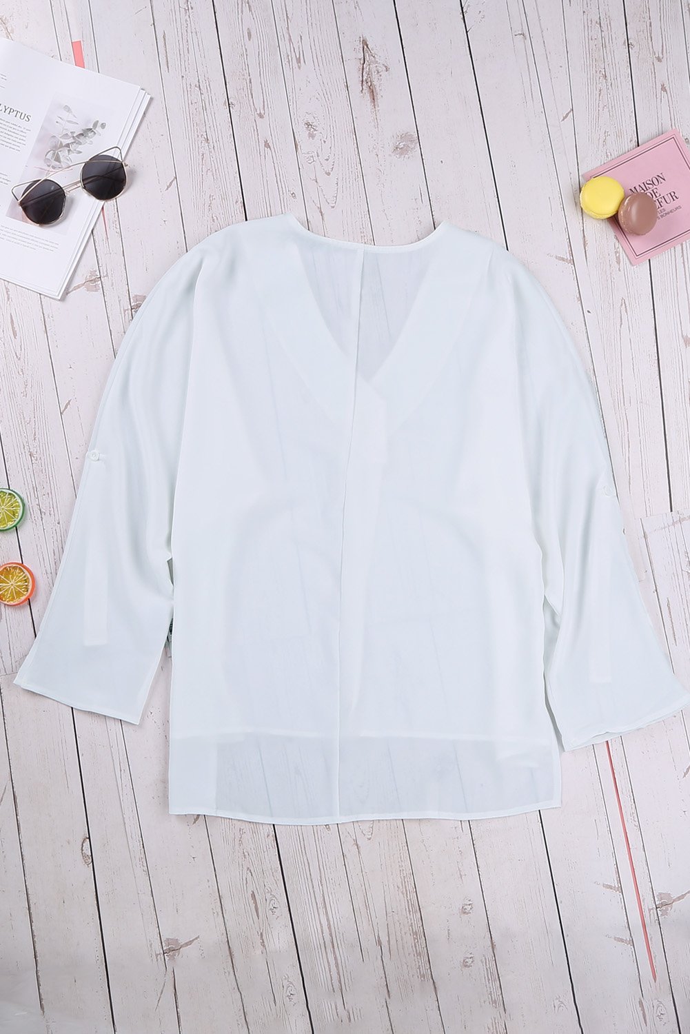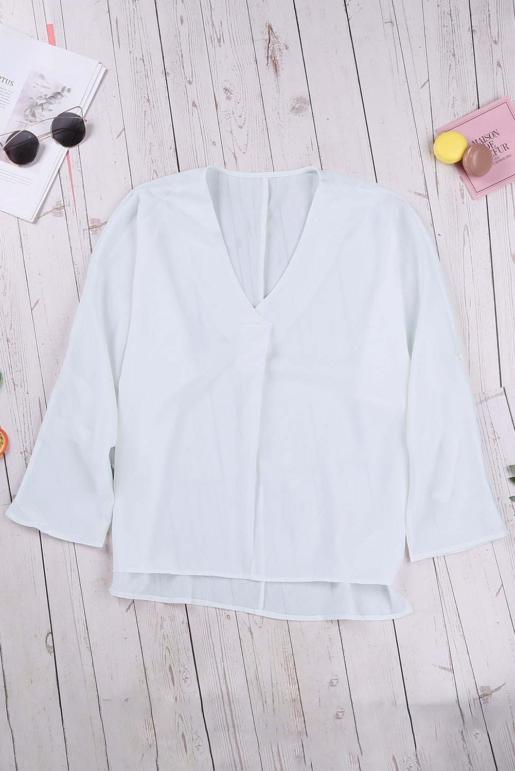 Dropship Elegant White V Neck 3/4 Sleeve High Low Hem Shirt
