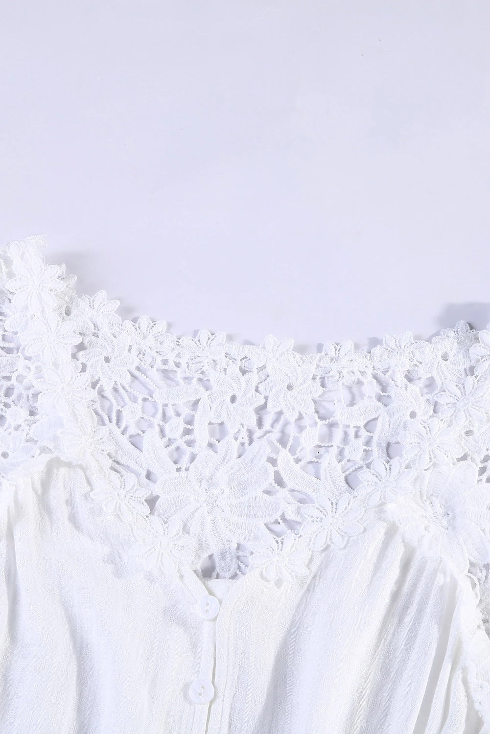 Dropship Long Sleeve Button Chic White Crochet Lace Top